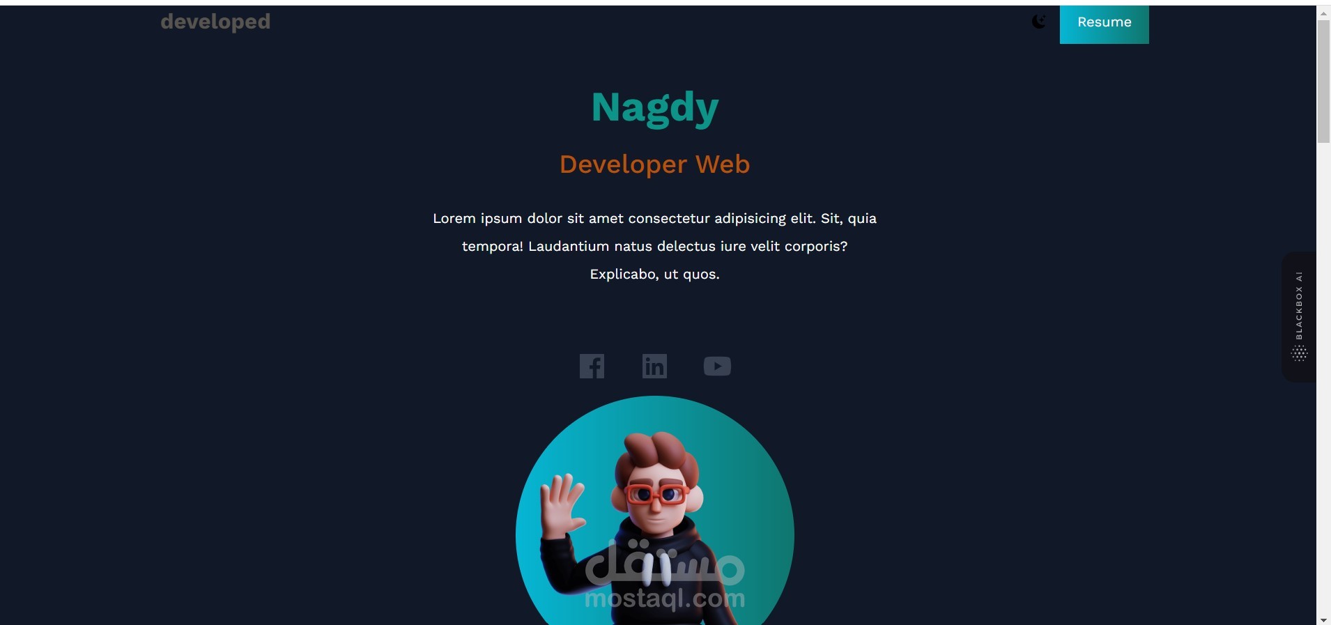 موقع بورتفليو لغات المستخدمه html, css, js, react, tailwand