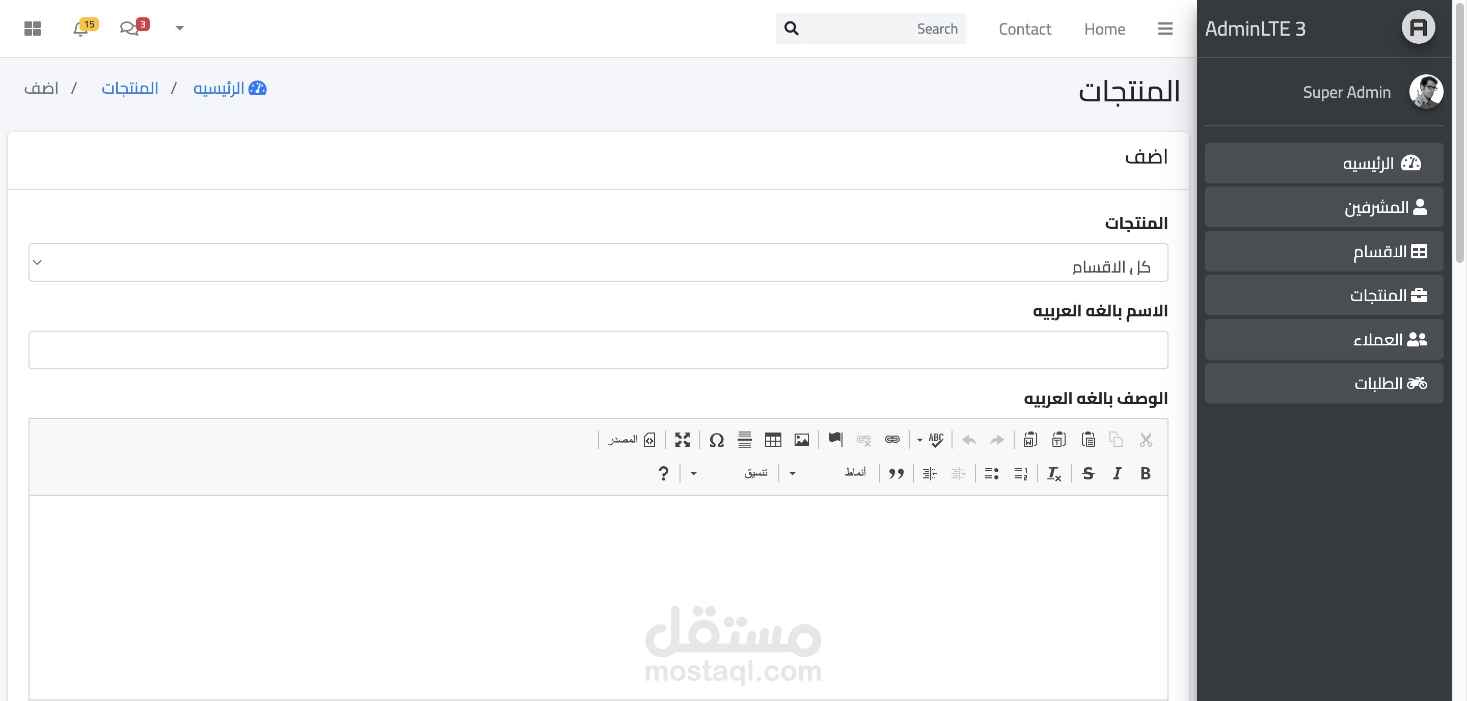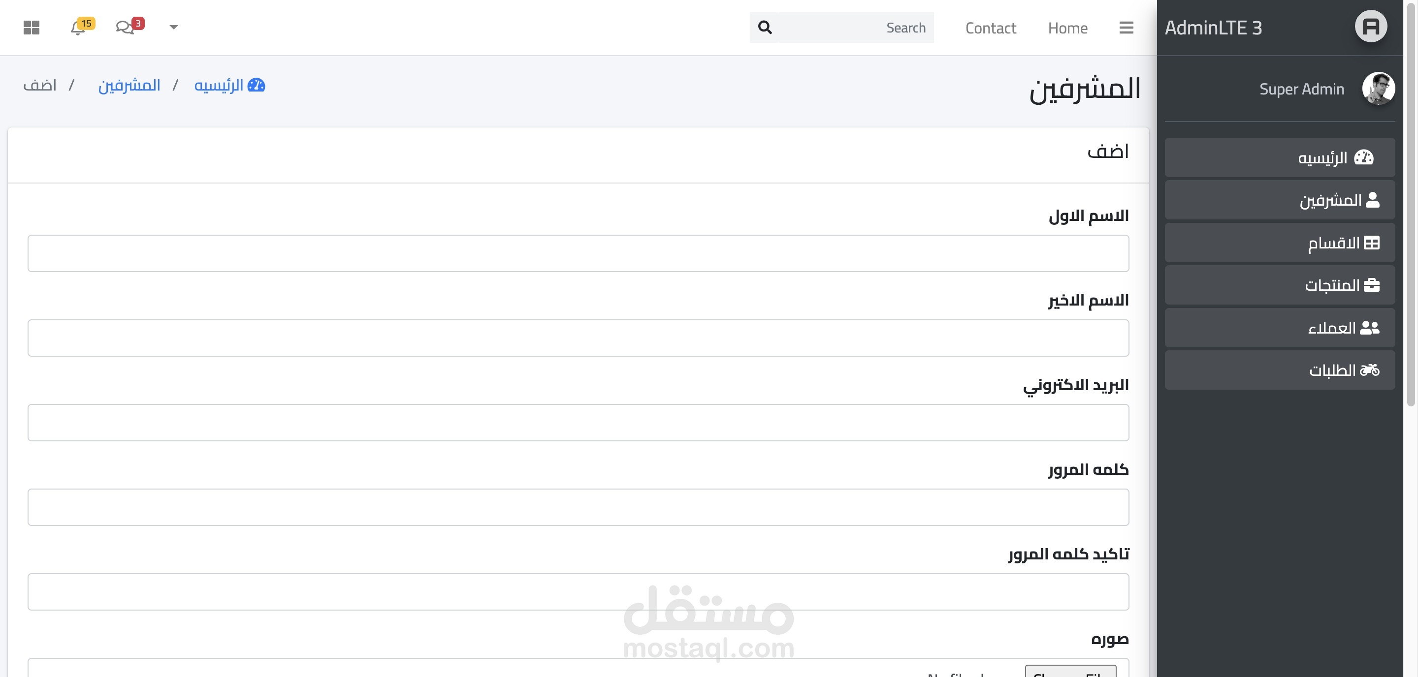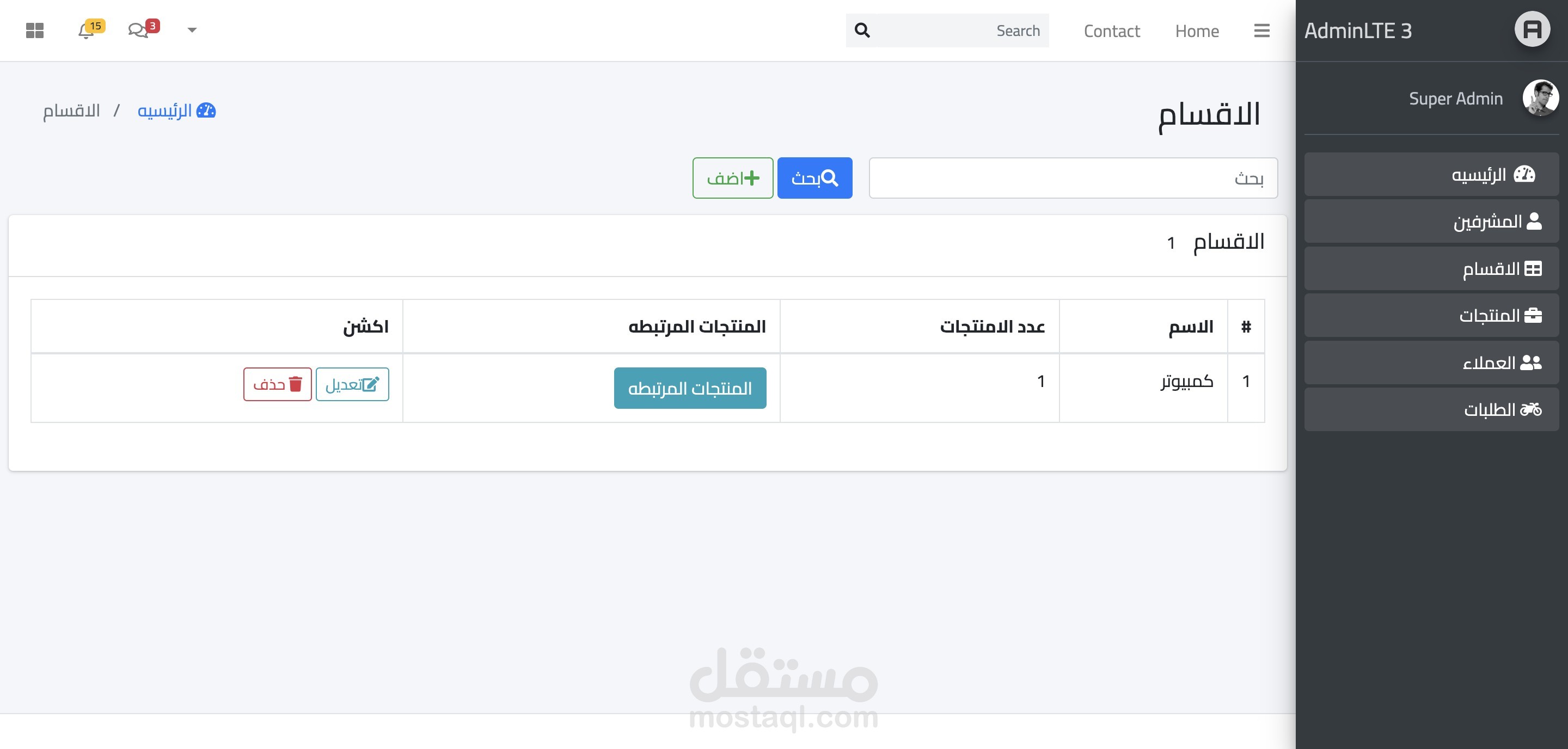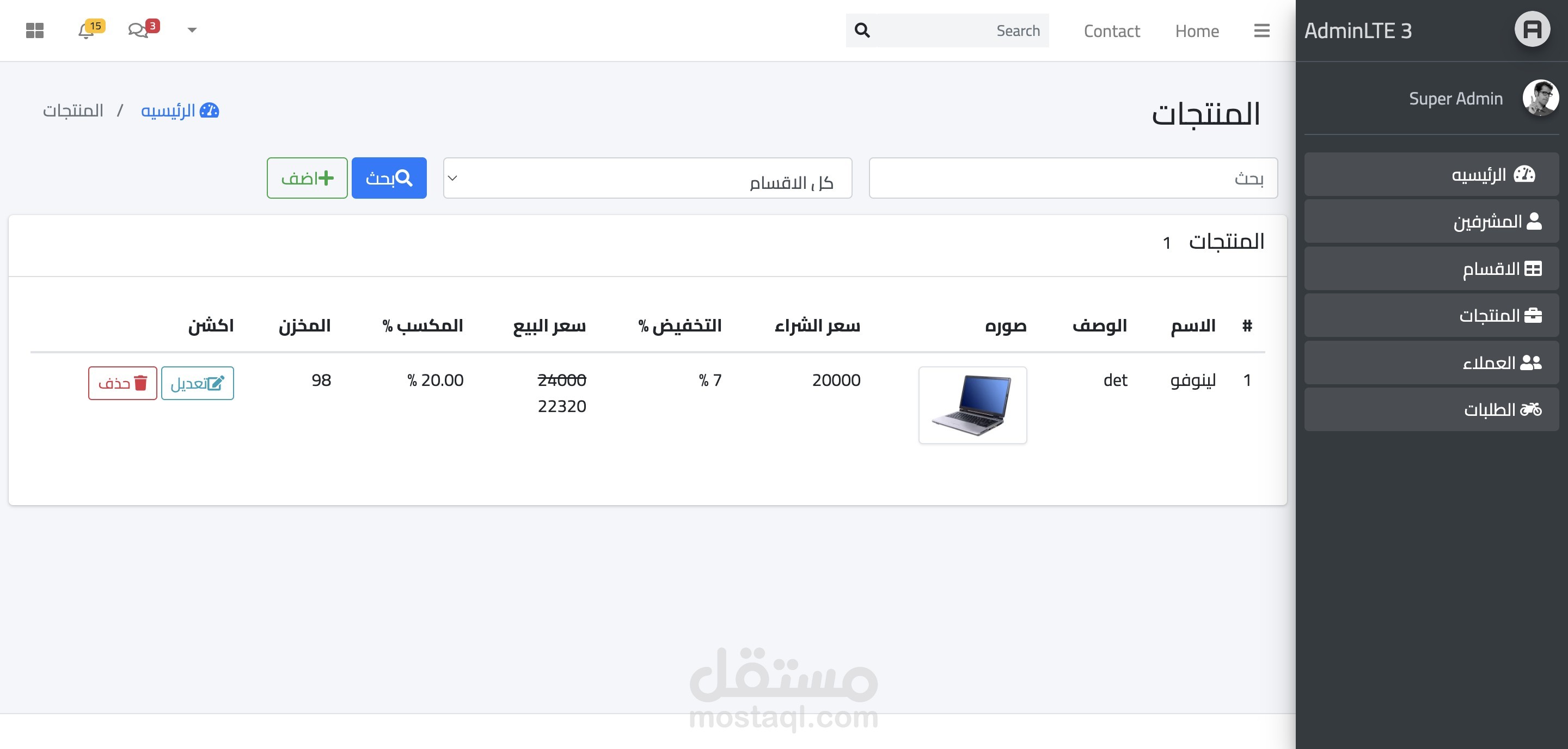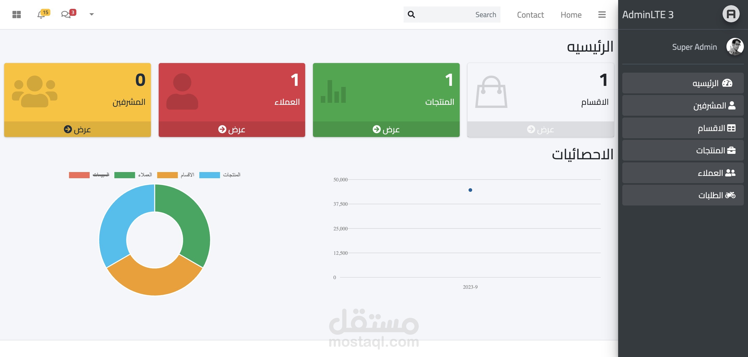 لوحة تحكم بنظام مخازن و محلات وتوصيل طلبات