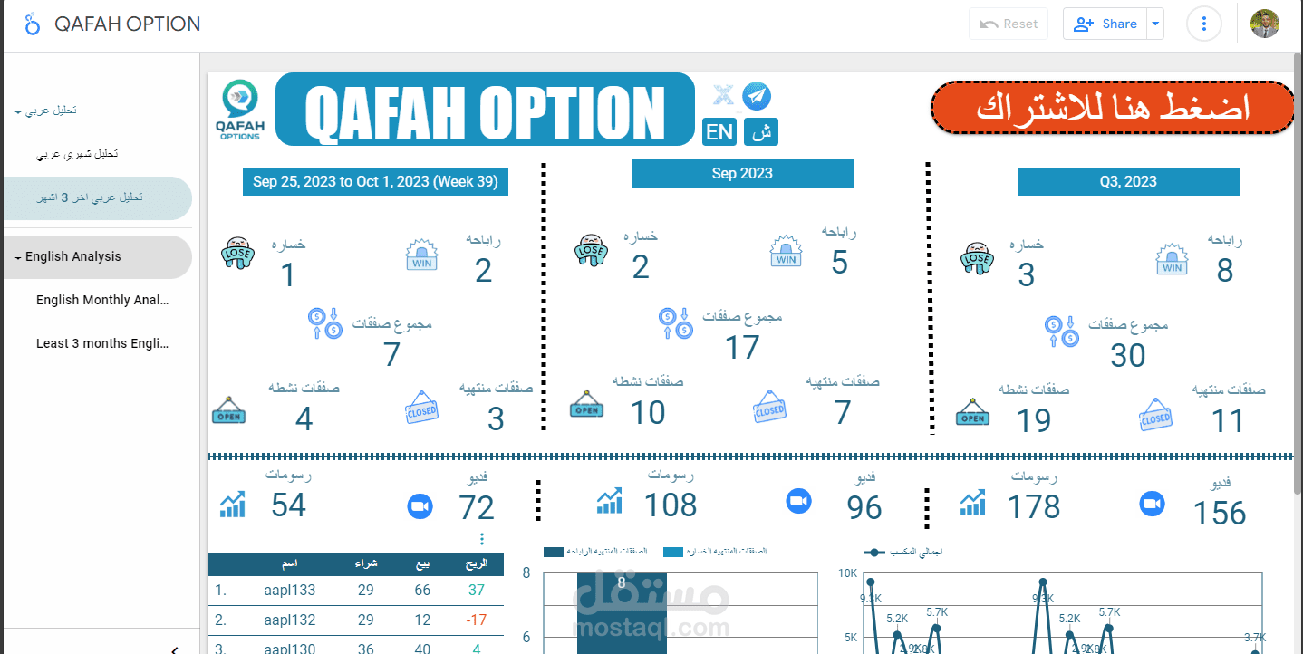 عمل تحليل شهري و يومي و اسبوعي و تحليل لاخر 3 اشهر