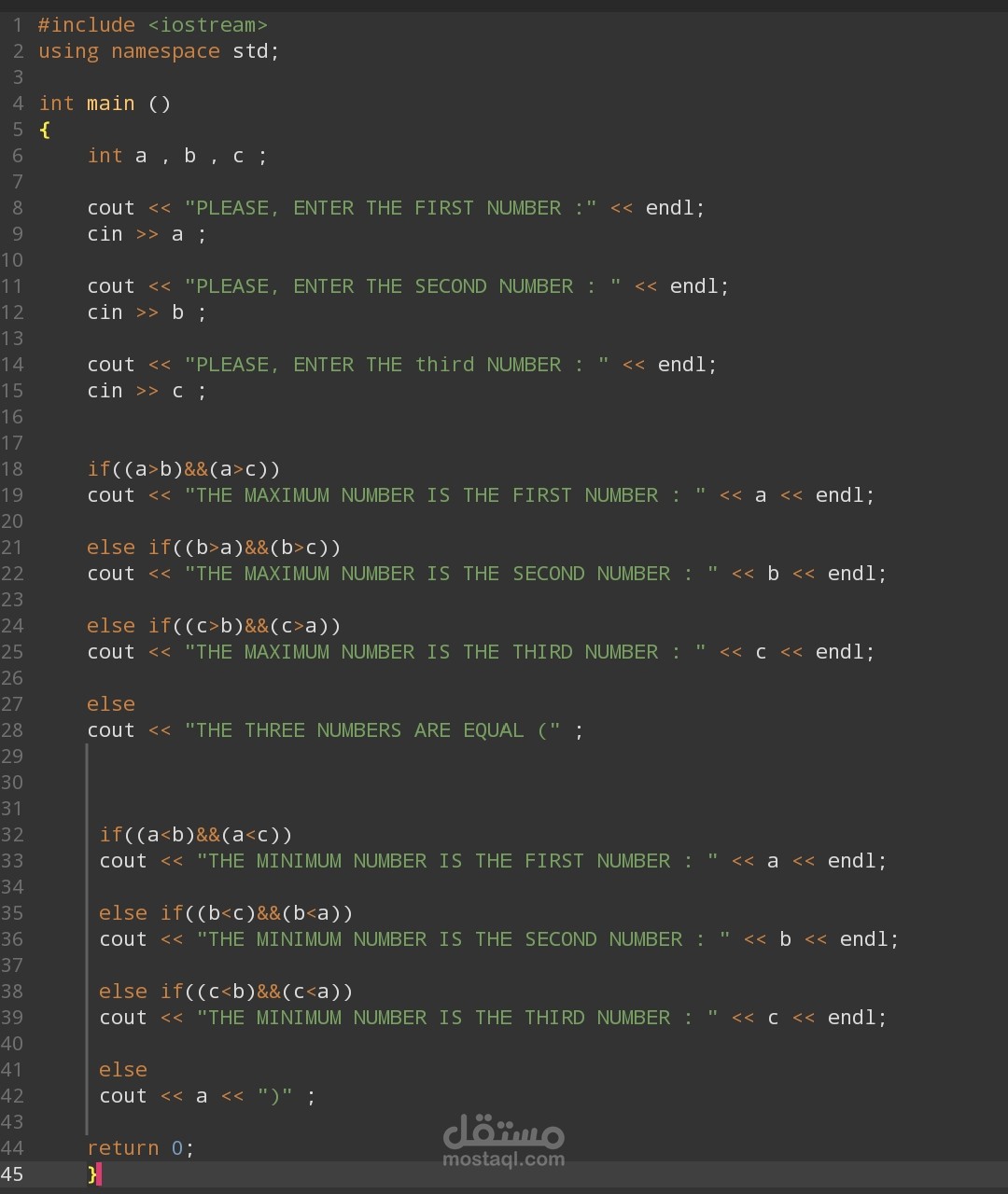 -Given 3 numbers A, B and C, and Print the minimum and the maximum number.