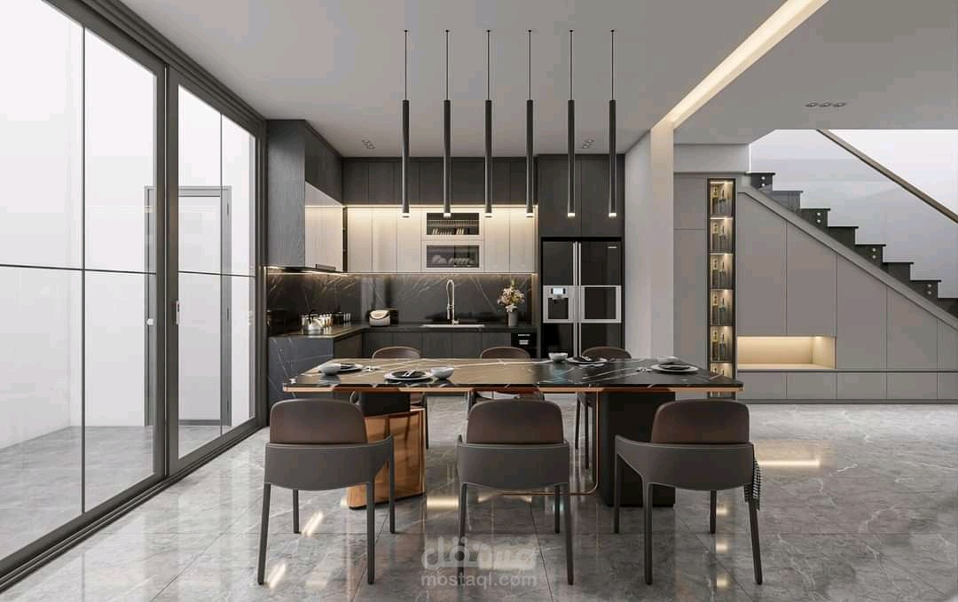تصميم صالة معيشة ومطبخ بطراز مودرن