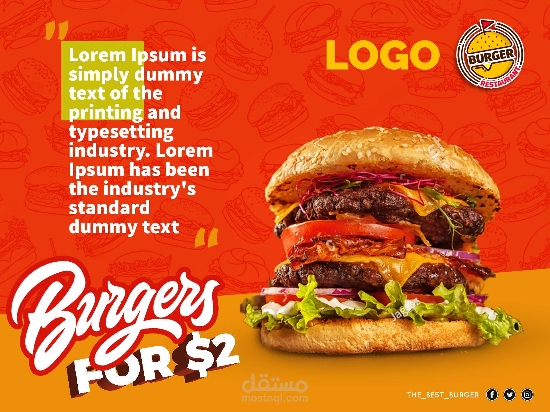 السلام عليكم اخواني قمة بتصميم لاحد إعلانات البرجر و هي عبارة عن اعلان متعدد الاستعمالات سيتم وضعه في متجري في افنتوا يتناسب مع عدة اطعمة فقط بتبديل البرجر بشيئ اخر ارجو ان ينال اعجابكم