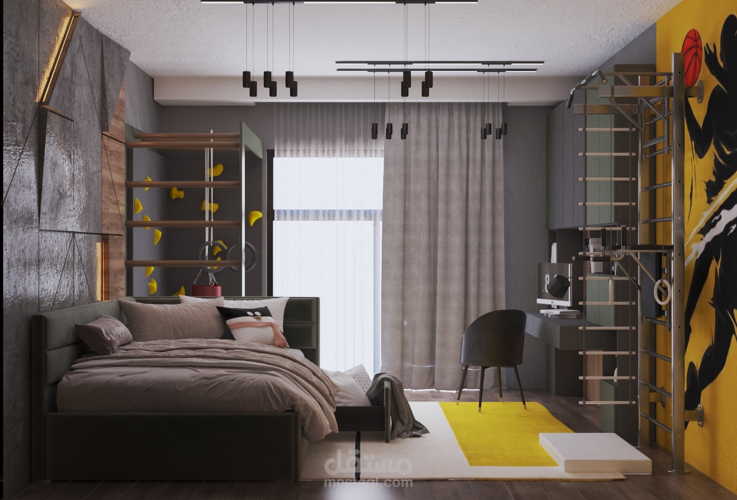 If you aren't sure where to start, themes that always work in teen's boy bedrooms are industrial, rustic styles with cool neutral colour palettes and lots of textures. Add in some quirky artwork and make sure there's plenty of open storage for them to display their knick-knacks.
