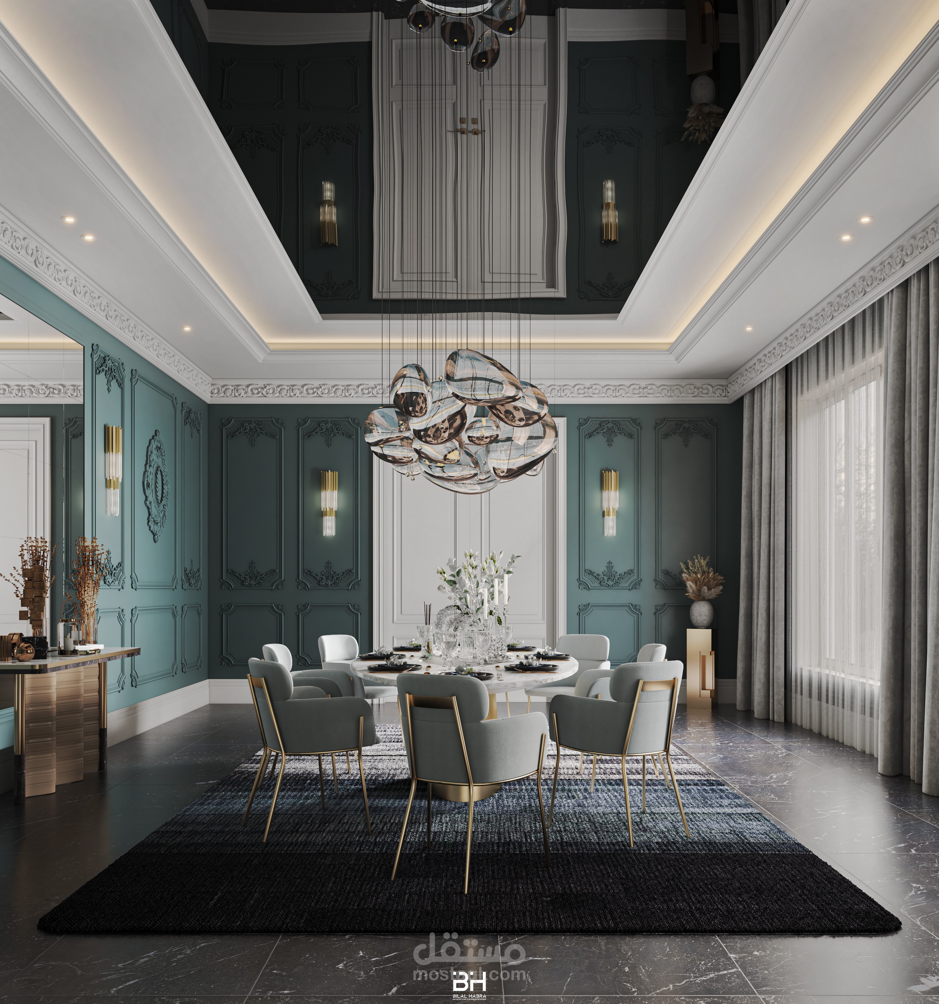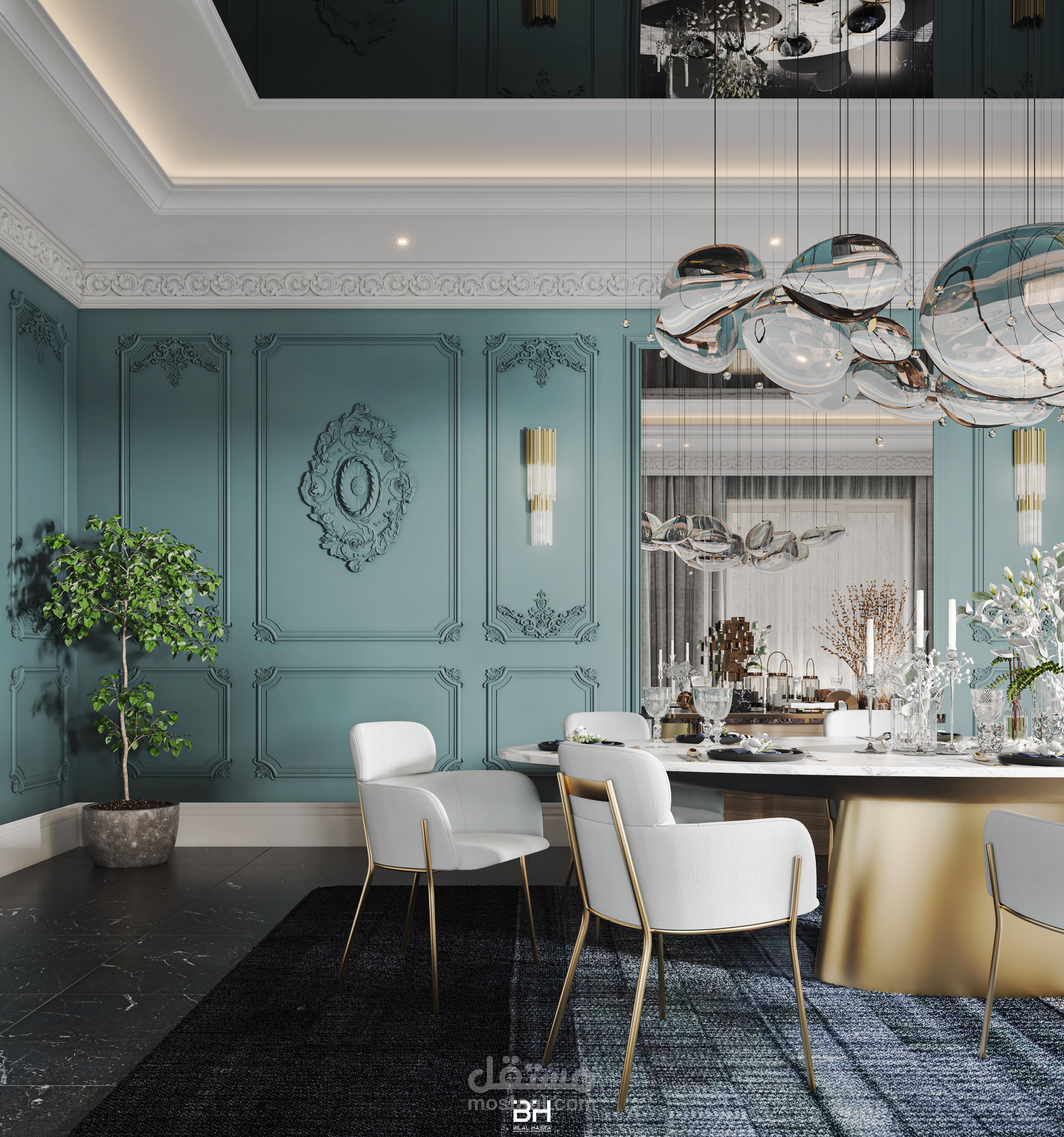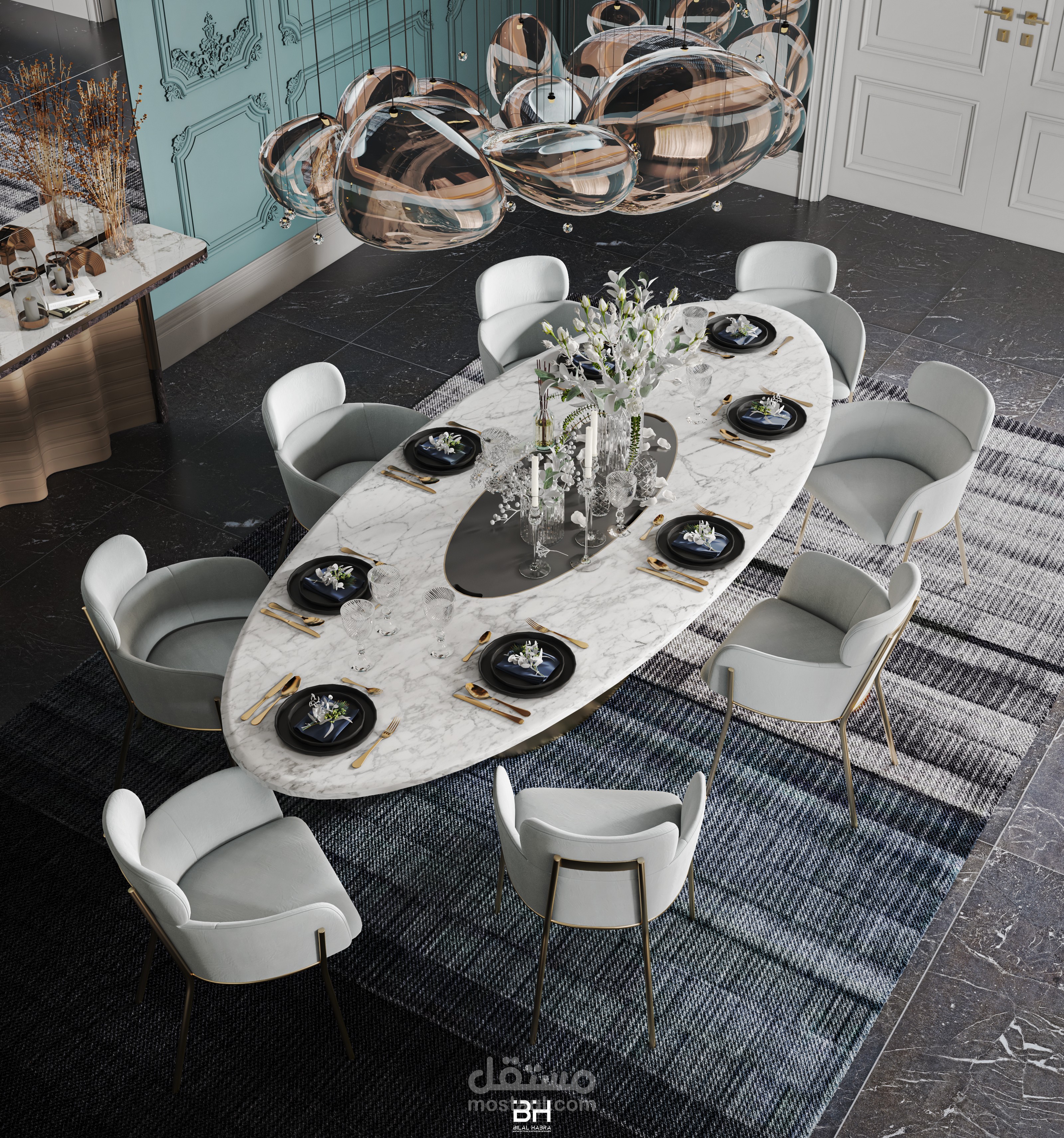 تصميم غرفة طعام فاخرة ضمن فيلا..