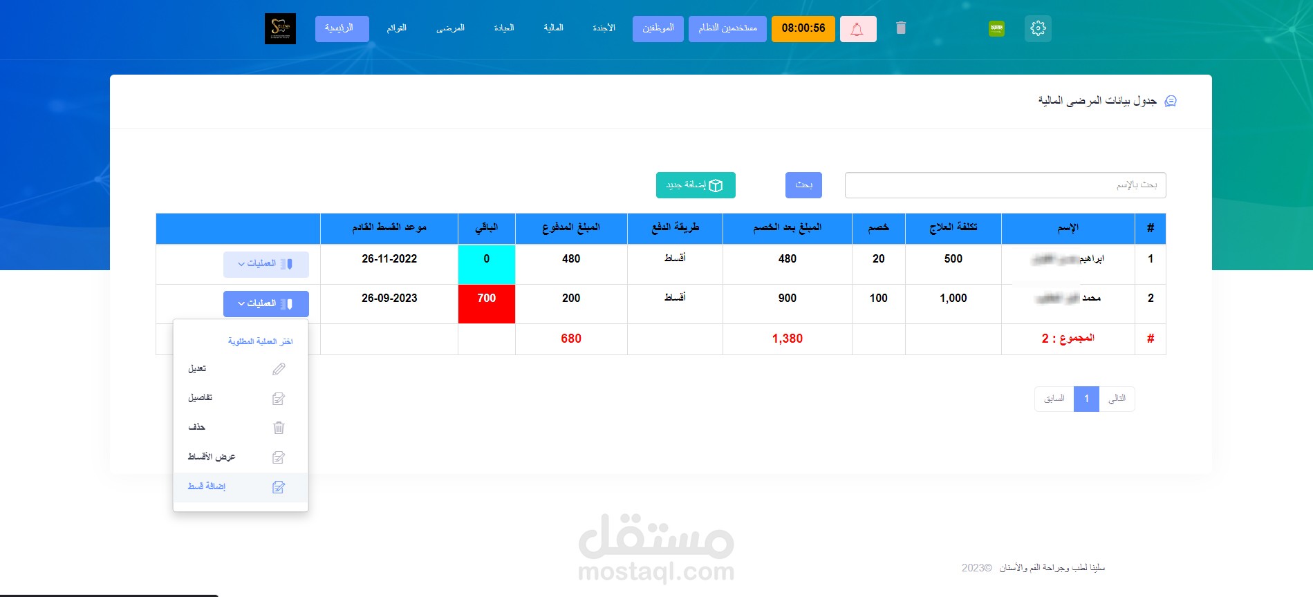 18.إنشاء ومتابعة الخطة العلاجية لكل مريض.
