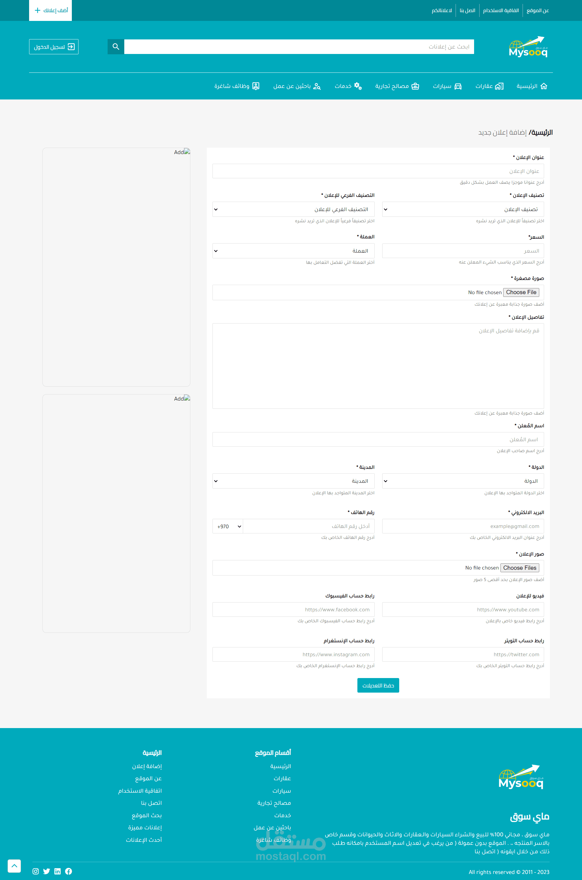 موقع ماي سوق للإعلانات المجانية يسمح للمستخدمين بنشر إعلاناتهم بشكل مجاني، ويوفر أيضًا مساحة مميزة للإعلانات لأولئك الذين يمتلكون حسابًا على المنصة. الموقع، الذي يمتلك أكثر من 200 ألف إعلان، تم تحديث تصميمه بأسلوب عصري وحديث يواكب التطورات في أنظمة الويب. توفر خدمات الموقع تجربة متميزة تشمل ما يلي: