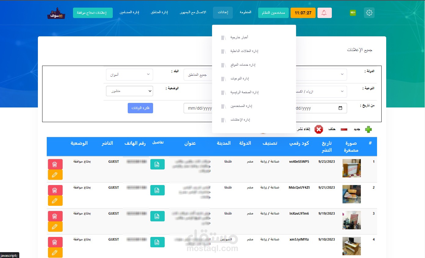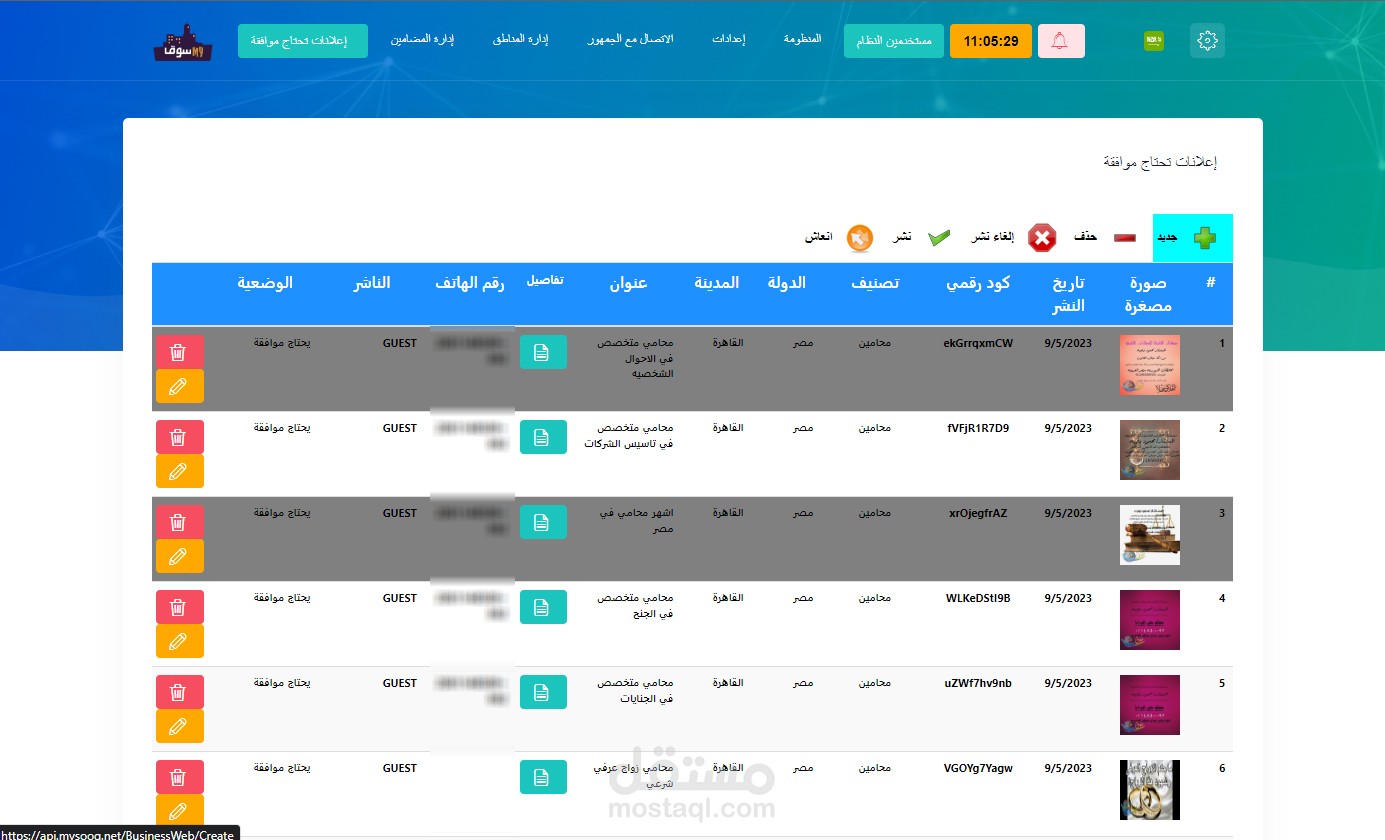 5.إدارة سهلة لحسابات مستخدمي المنصة وأصحاب الإعلانات، مما يتيح لهم تعديل وتحديث إعلاناتهم.