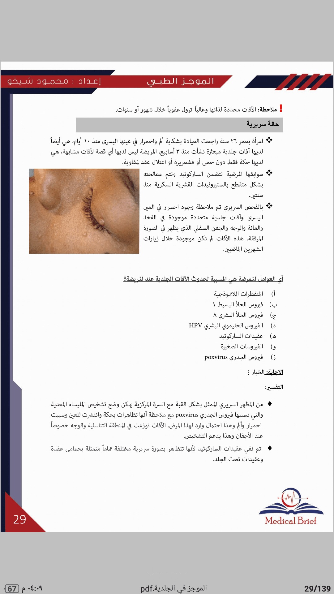 هذا الأسلوب المتبع مفيد ويتيح للطالب التركيز على المعلومات السريرية الهامة، هي نبذة بسيطة عن حالات سريرية هدفها تشجيع وتحفيز الطالب على دراسة عدد أكبر من الحالات السريرية وكسر الحاجز بين الجانب النظري والتطبيق العملي.