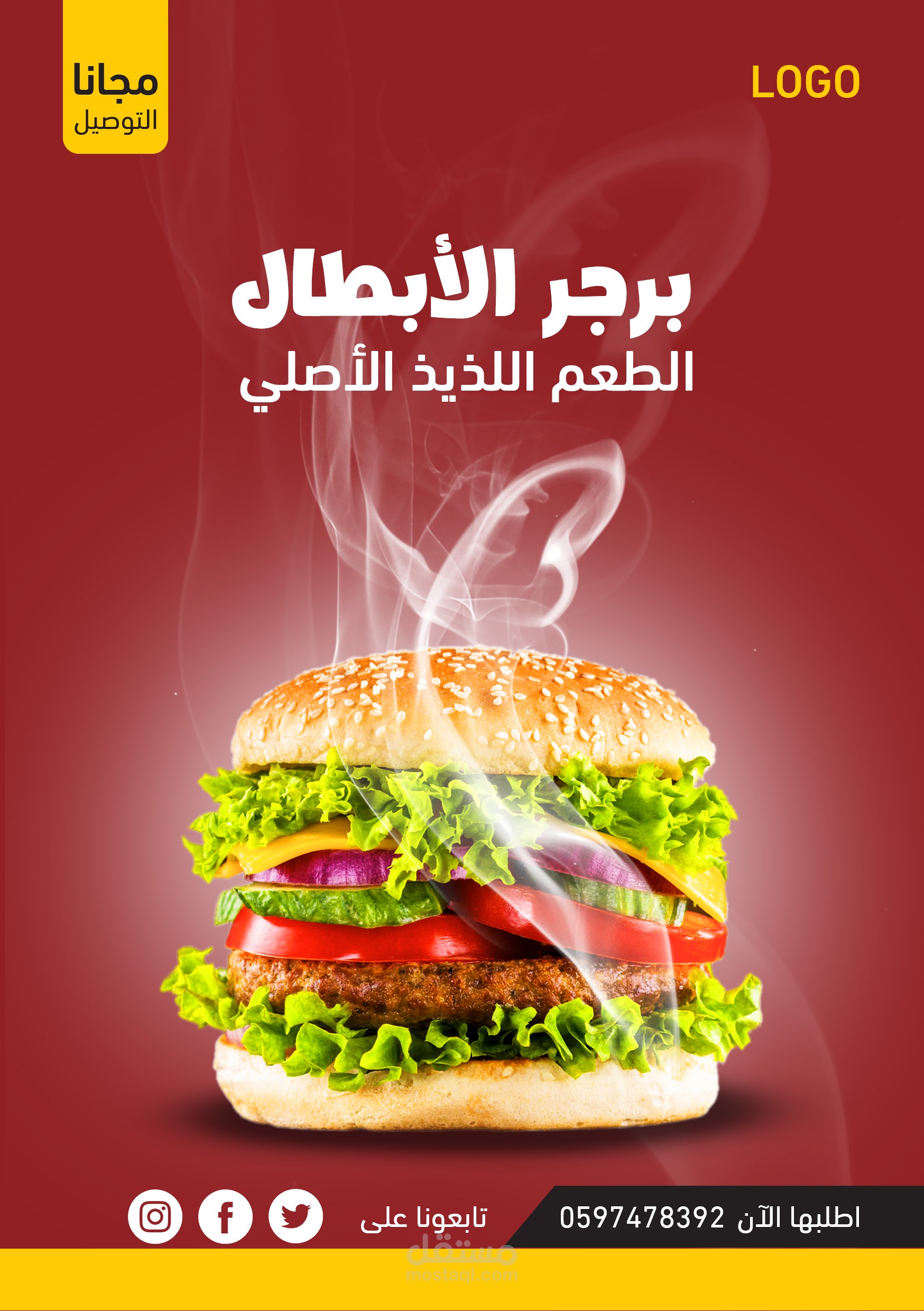تصميم عصري مبتكر لفلاير Flyer يكون التركيز الأساسي على البرجر