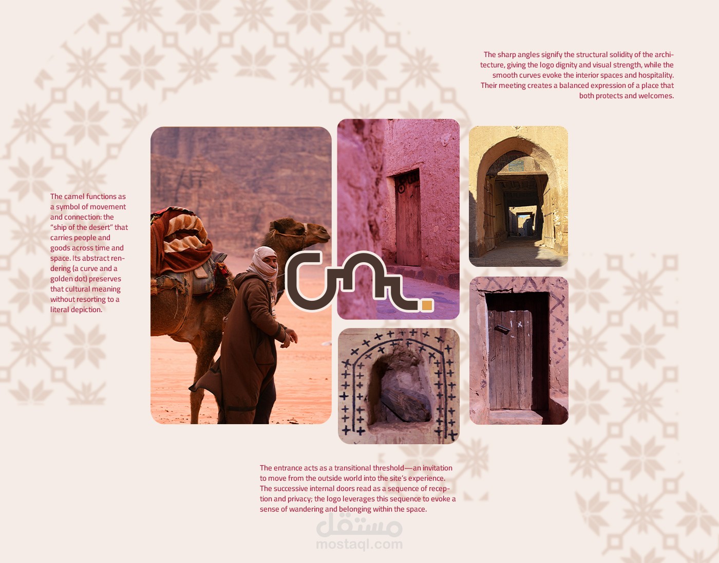 أما الجمل، “سفينة الصحراء”، فيمثّل وسيلة التنقّل القديمة التي تصل بين الماضي والحاضر، وقد اندمجت هيئته ضمن تكوين الشعار المستوحى من مدخل القصر، ليجتمع المعنى المعماري بالرمز الثقافي في وحدة تصميمية متكاملة.