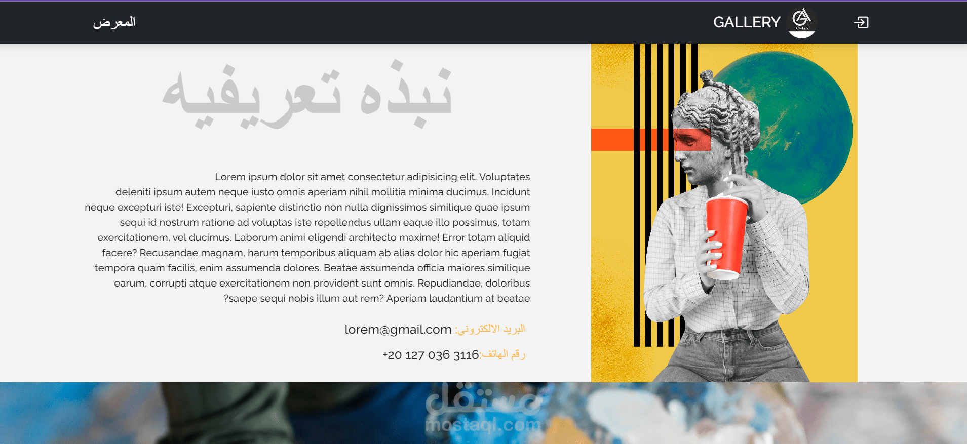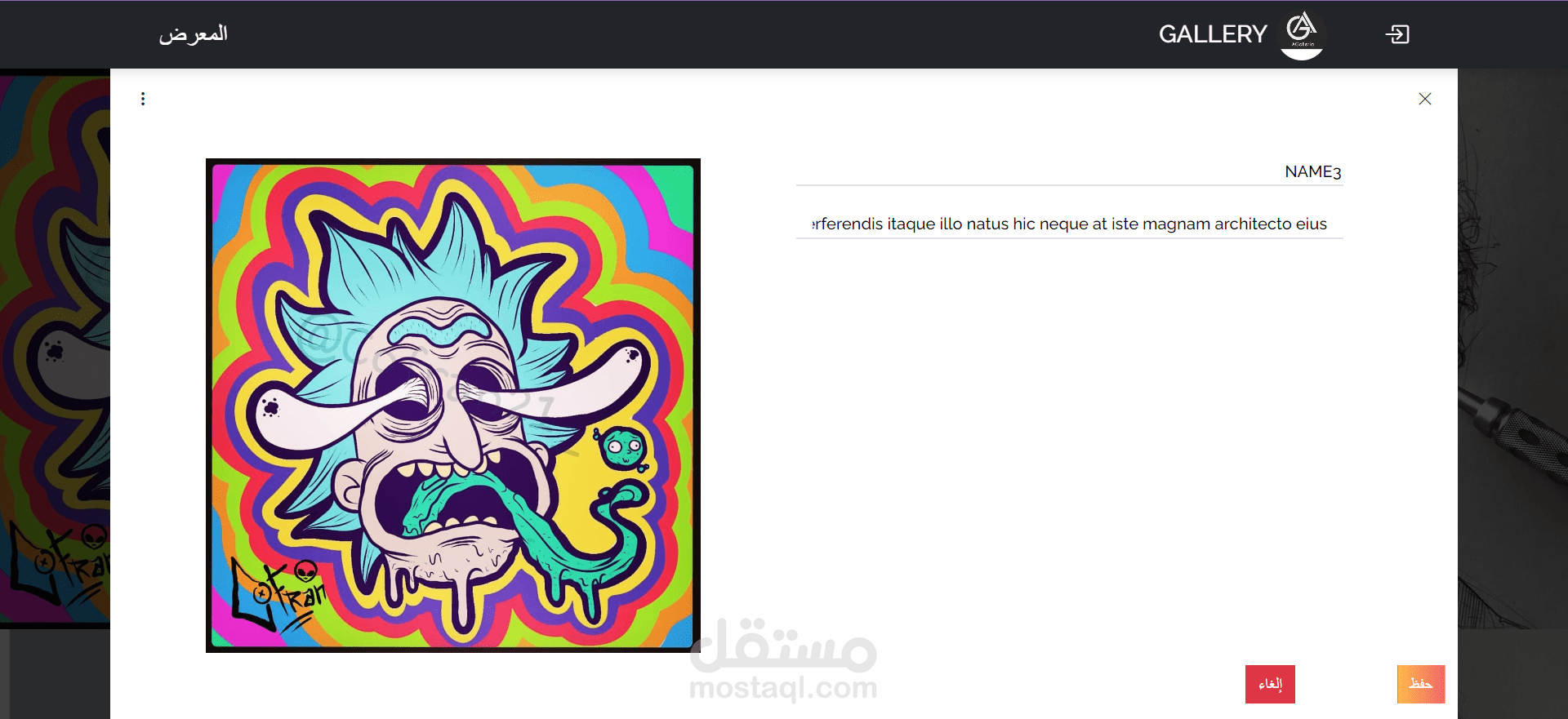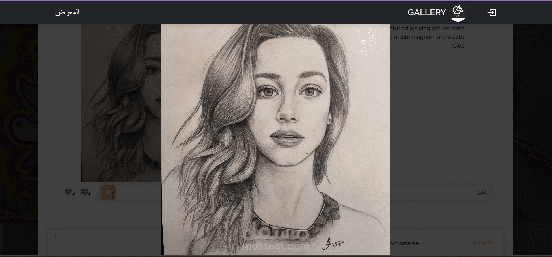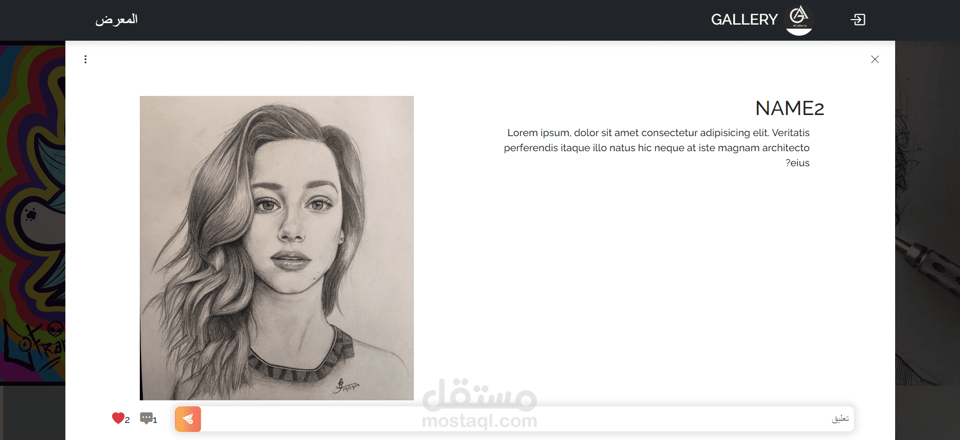 موقع ويب لكل فنان لعرض أعماله الفنية، وواجهة مستخدم تسمح للمستخدم بالإعجاب أو التعليق على أفكاره في الفن.