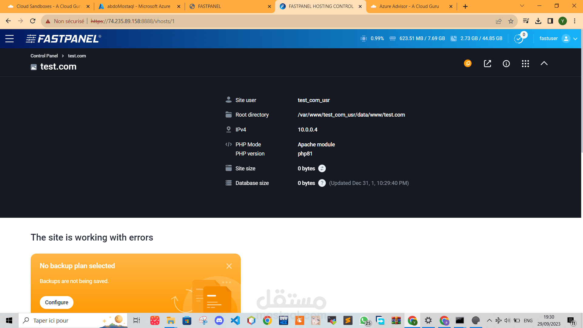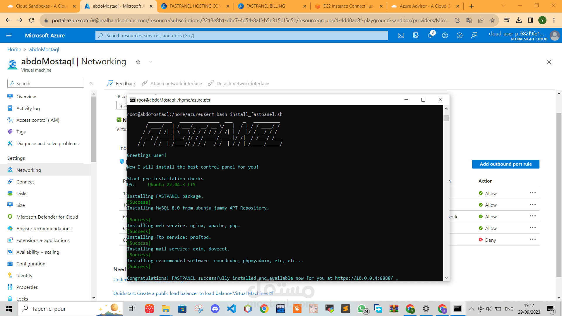 setup and configure a server in Microsoft Azure and install the free control panel on it