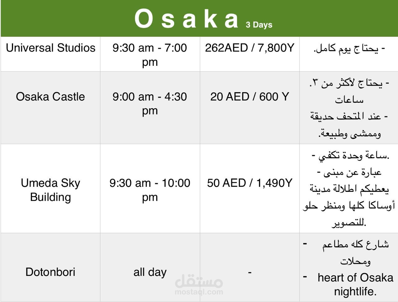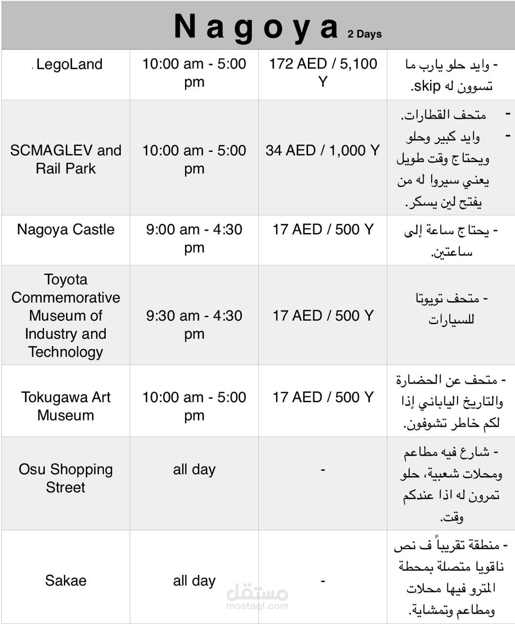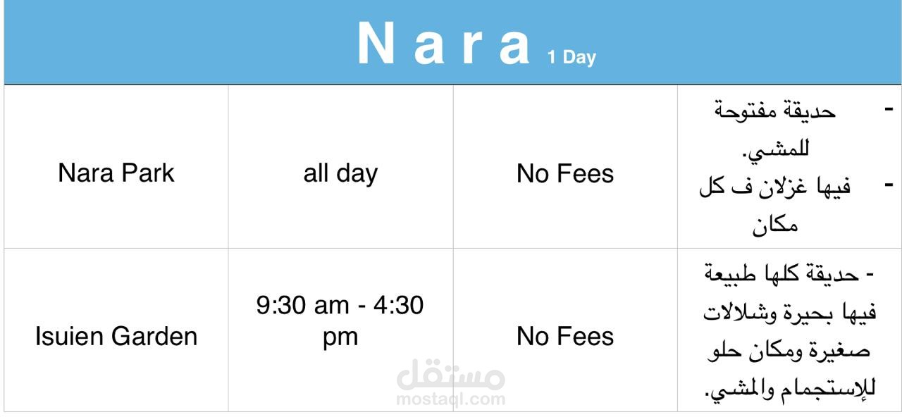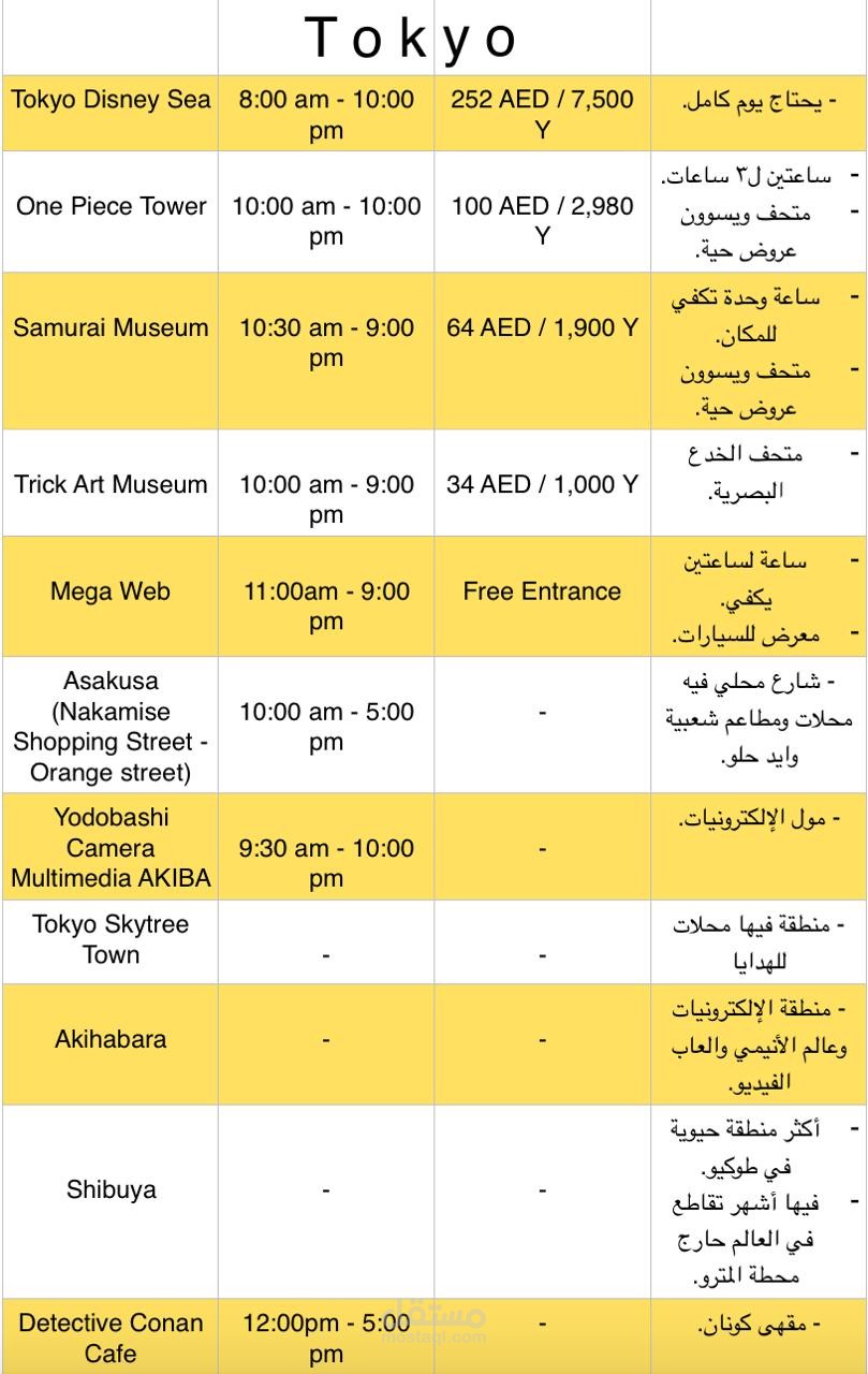 جدول سفر لليابان