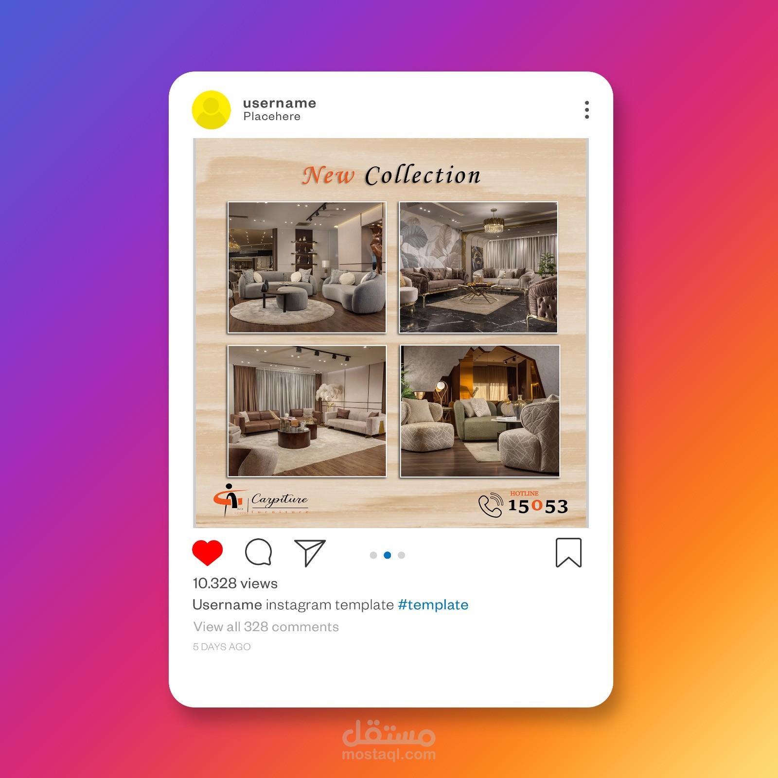 تصميمات سوشيال ميديا فيسبوك كافر و انستجرام لمعرض كاربيتشر للأثاث