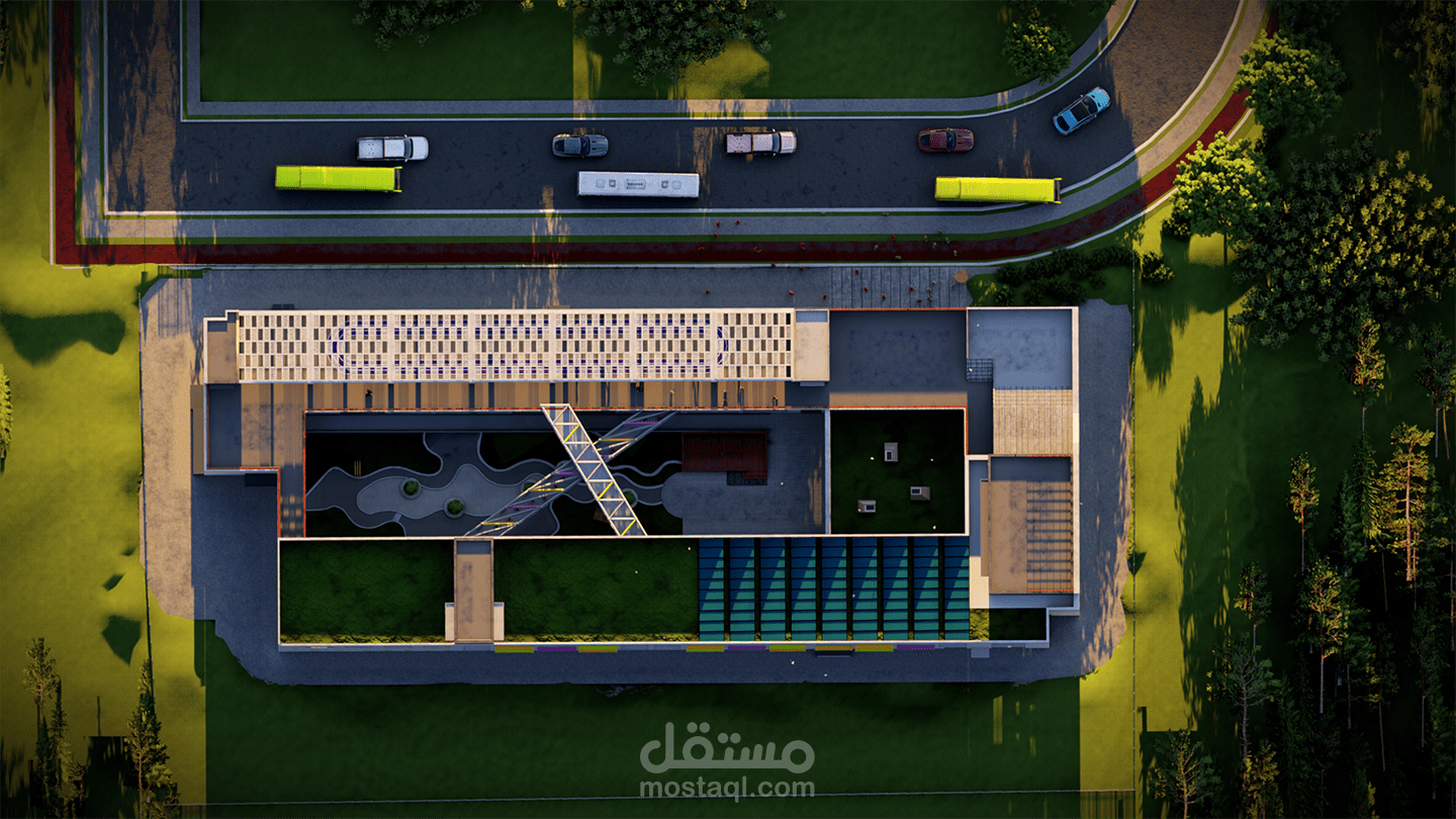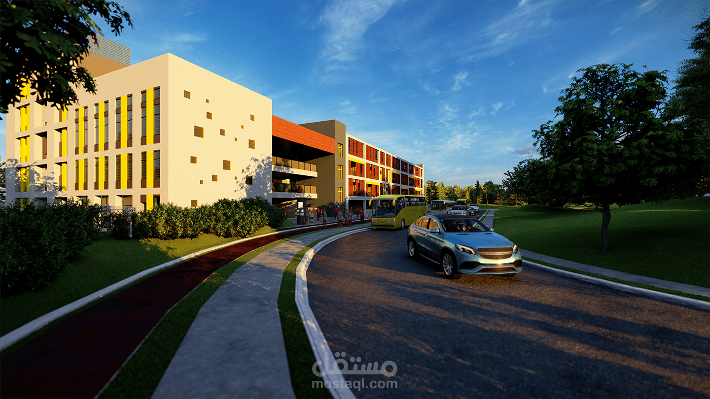 باستخدام الـ 3ds Max، تمكن فريق التصميم من إنشاء تصورات واقعية ومثيرة للمدرسة بما في ذلك الهيكل الخارجي والمساحات الداخلية. ولتحقيق مستوى أعلى من واقعية التصميم وتفاصيله، تم استخدام برنامج Lumion لإنشاء لقطات فيديو حية وجذابة تعكس الأجواء والتجربة المستقبلية للمدرسة بشكل مبهر.