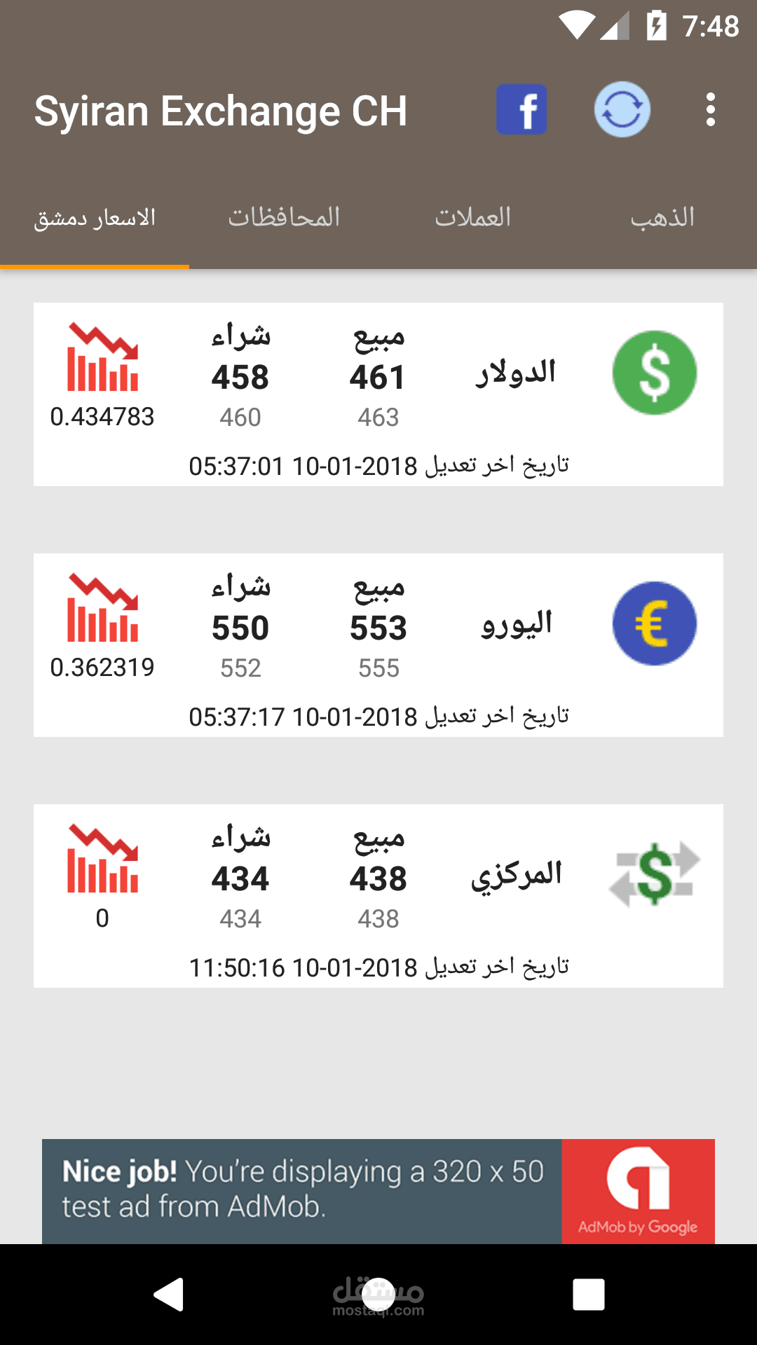تطبيق خاص لبعض أسعار العملات المهمة على الليرة السورية