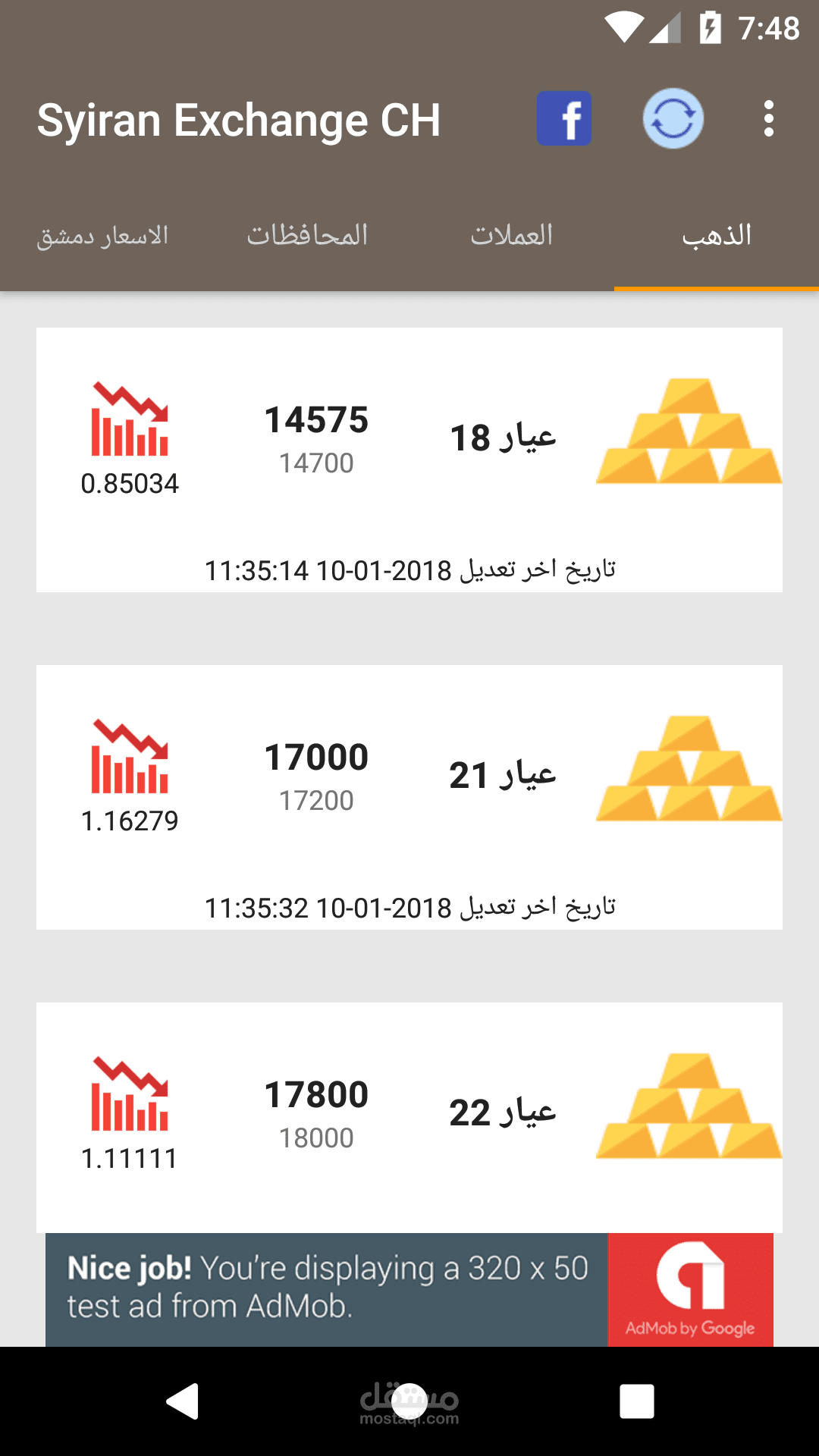 يتم تحديث الاسعار من لوحة تحكم