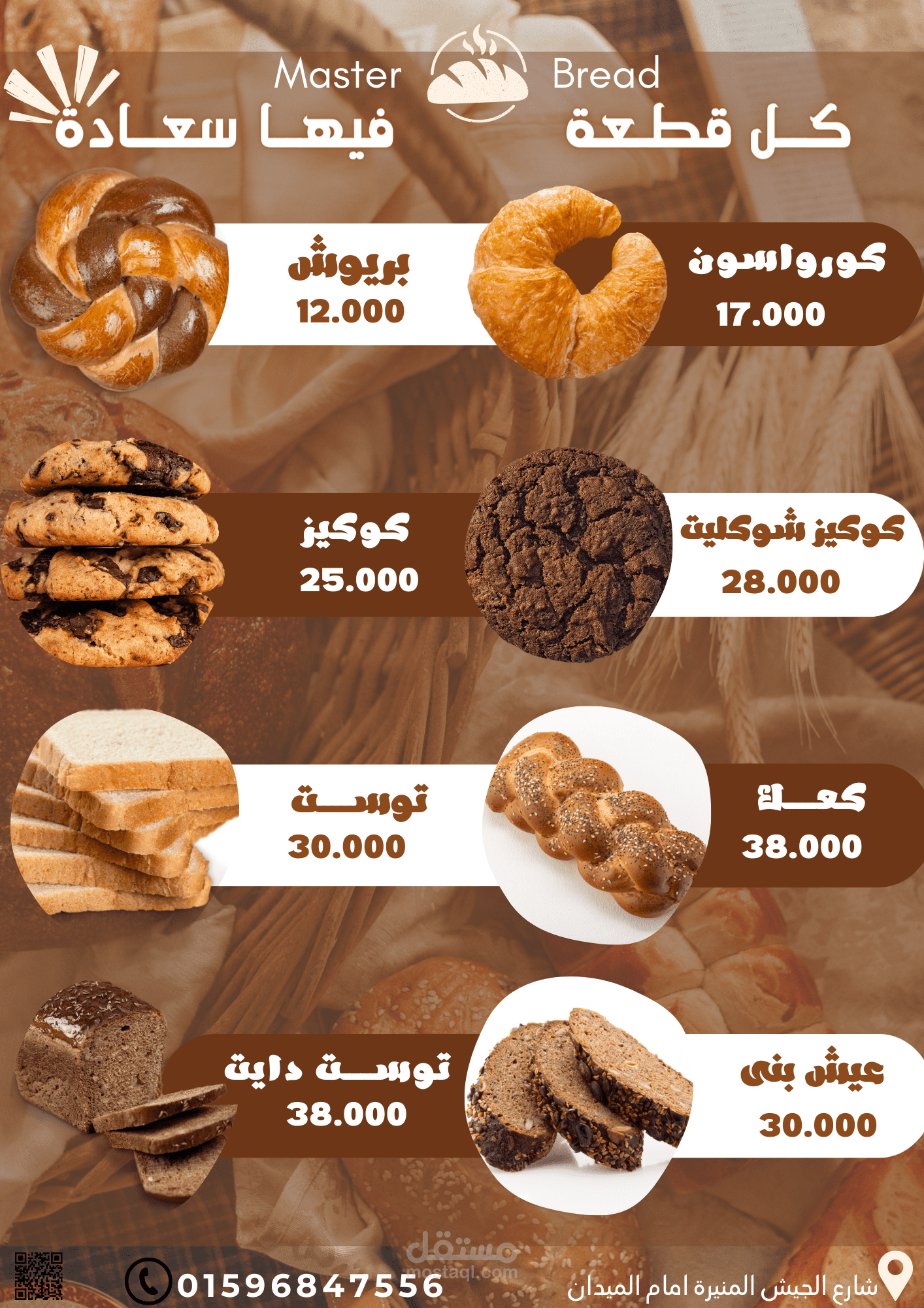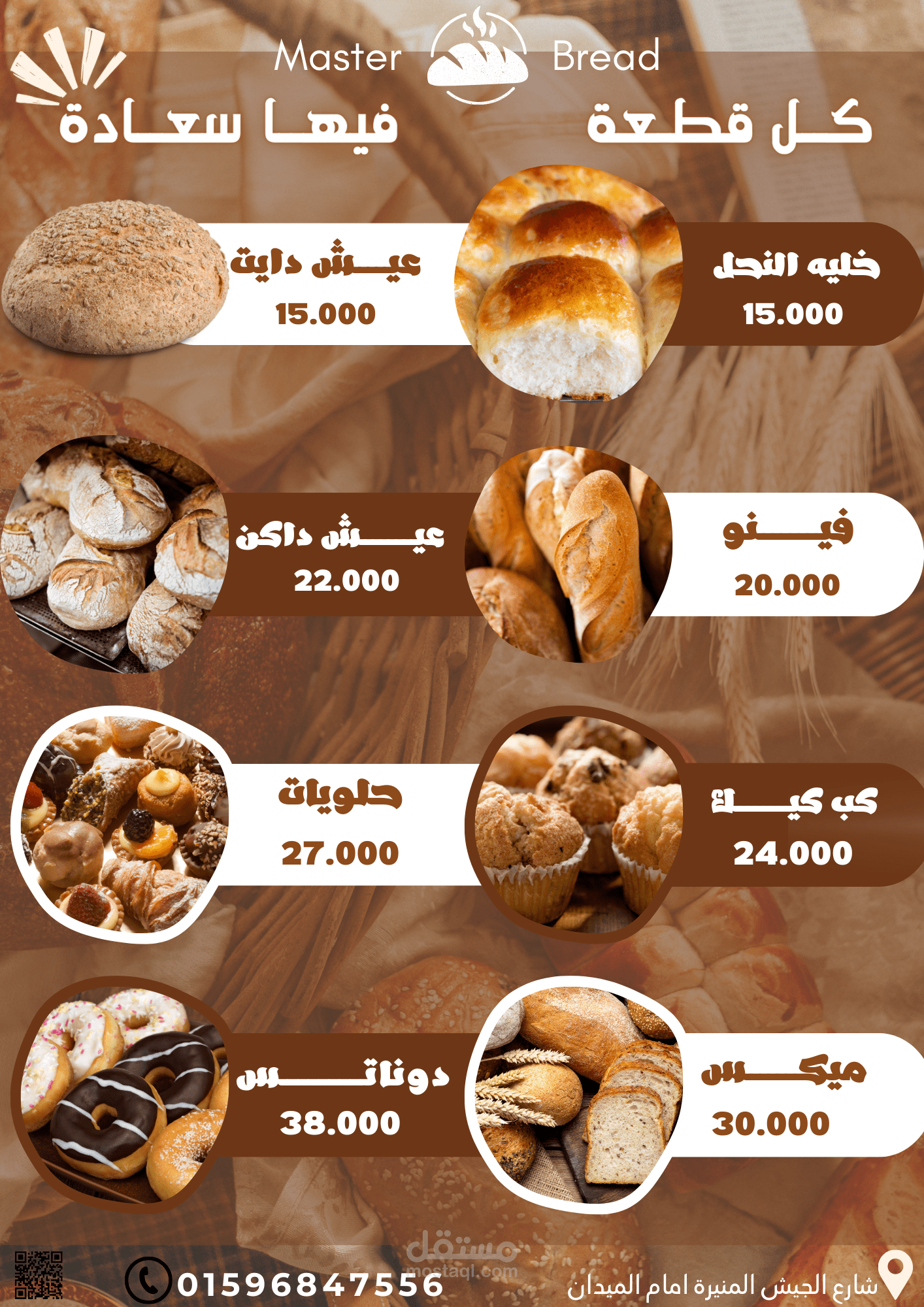 شعار المطعم: اضع شعار المطعم ومعلومات الاتصال ببيانات القائمة.