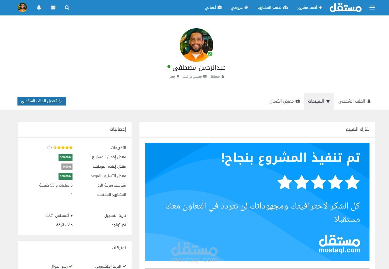 الحمد لله تم بفضل الله تسليم المشروع بجودة وبدقة متناهية وتم تقييم المشروع بـ5 نجوم وهذا كان تعليق صاحب شركة التدريب ( كل الشكر لاحترافيتك ومجهوداتك لن نتردد في التعاون معك مستقبلا)
