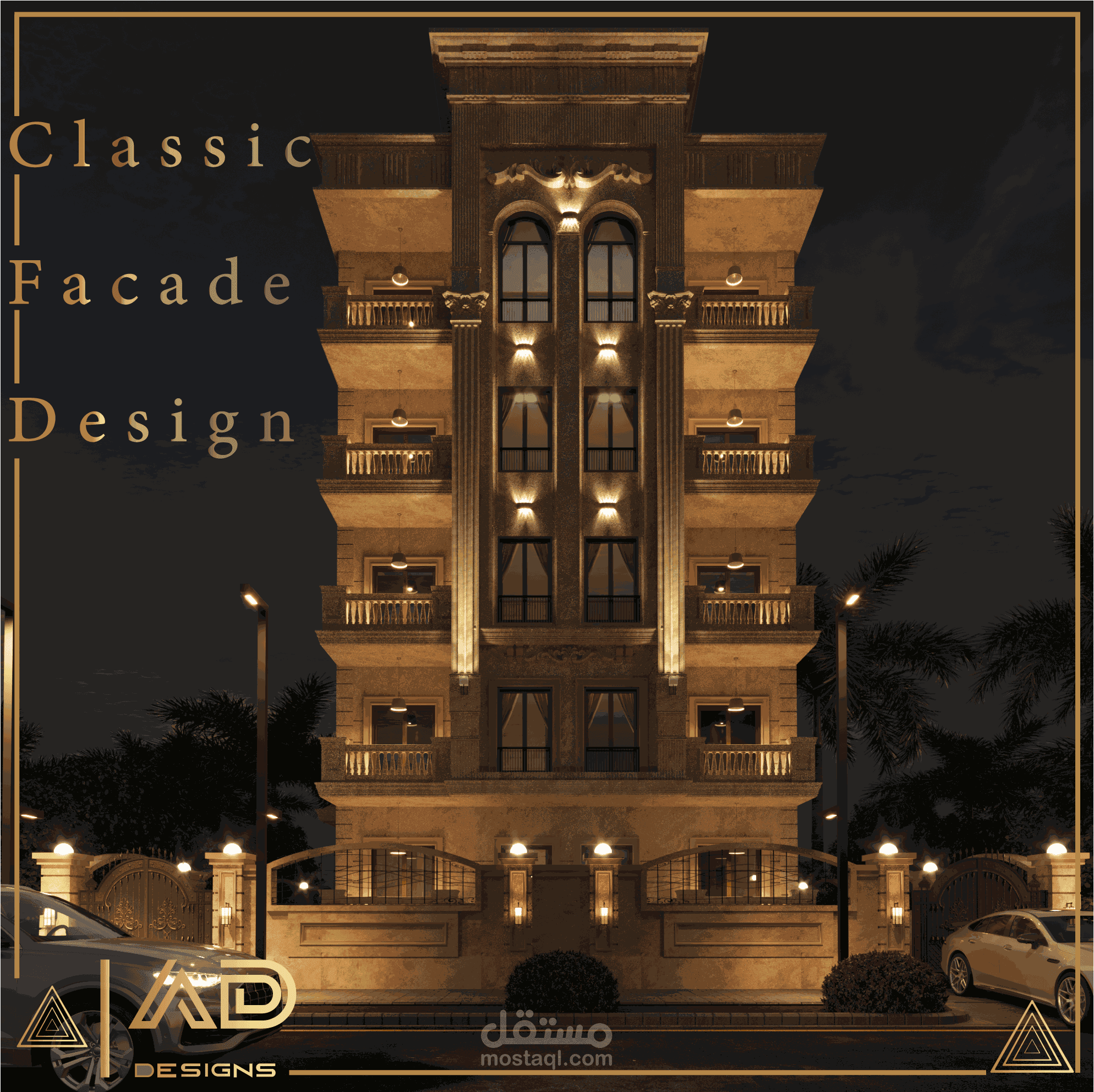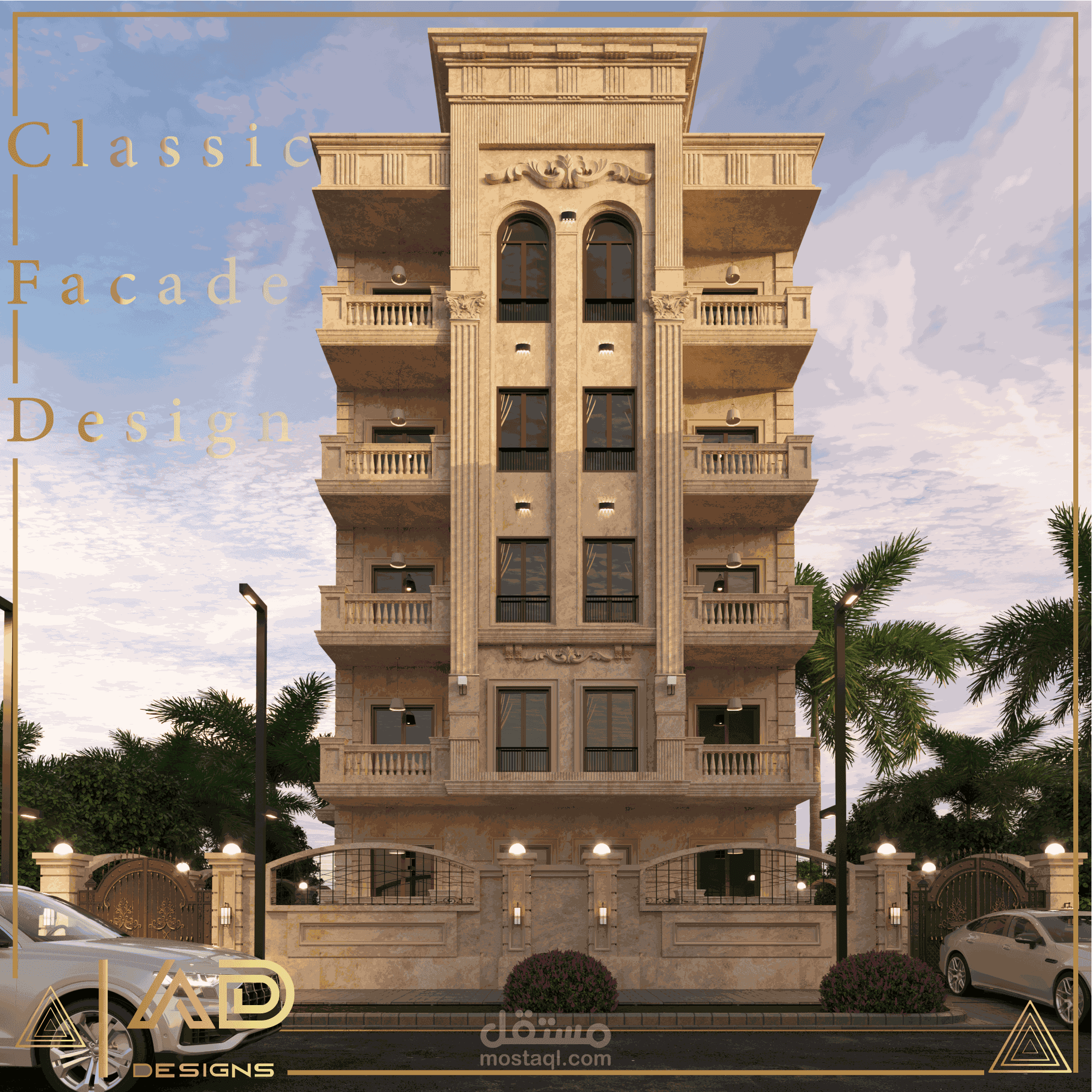 تصميم واجهة عمارة سكنية بطراز كلاسيك