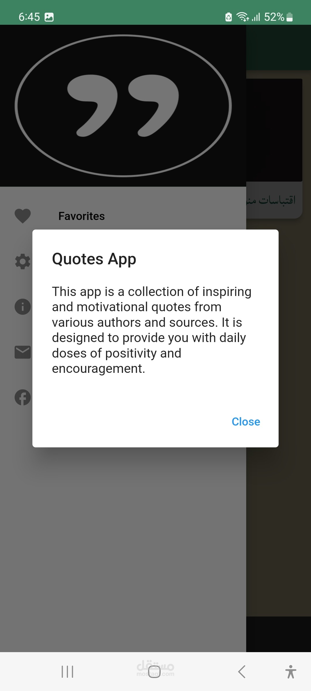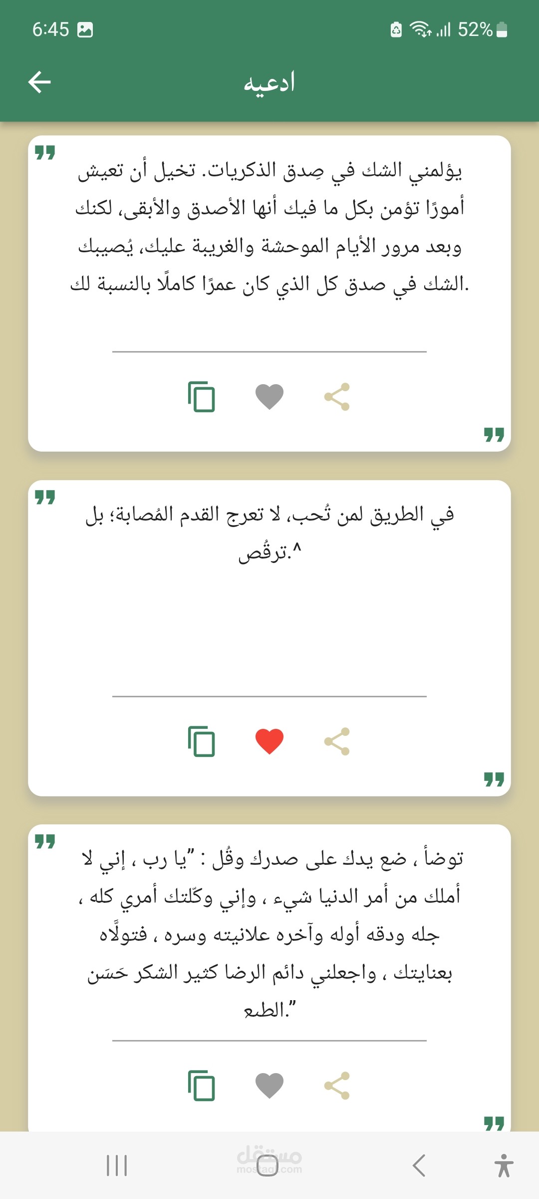 تطبيق لعرض الاقتباسات والادعية قيد التنفيذ