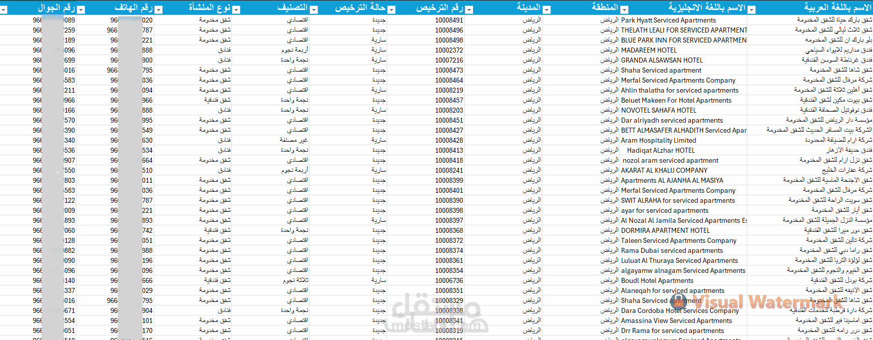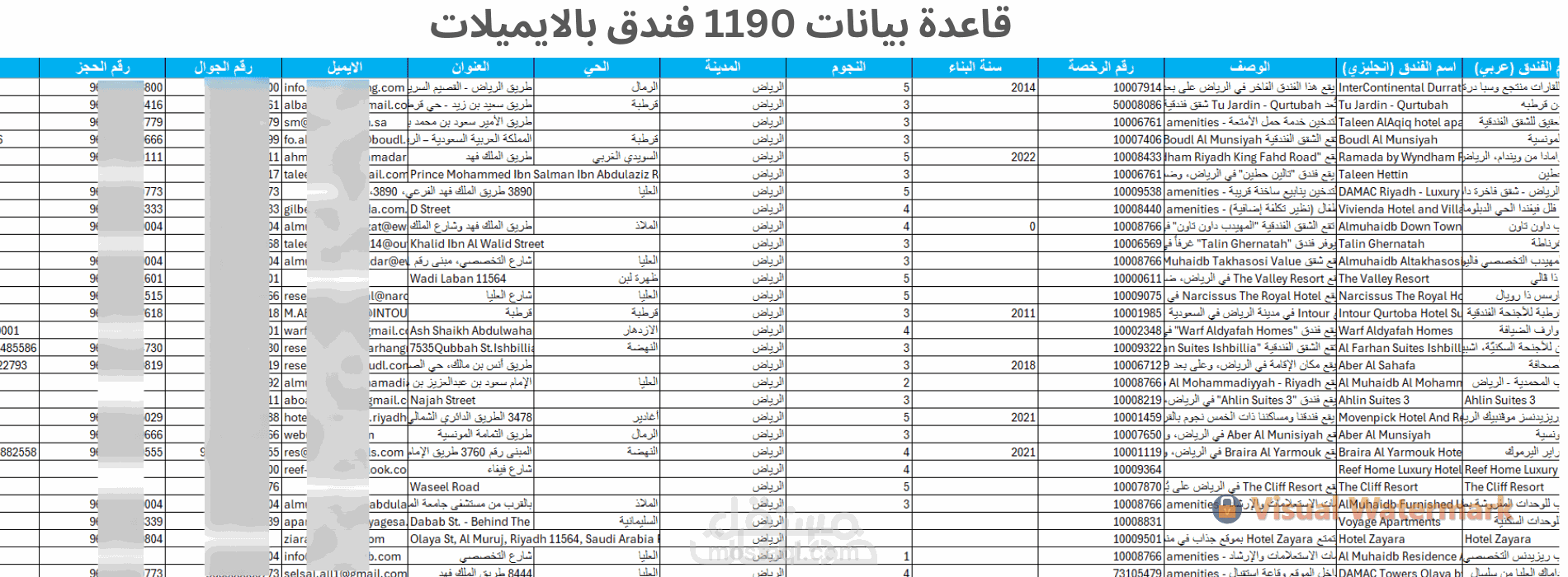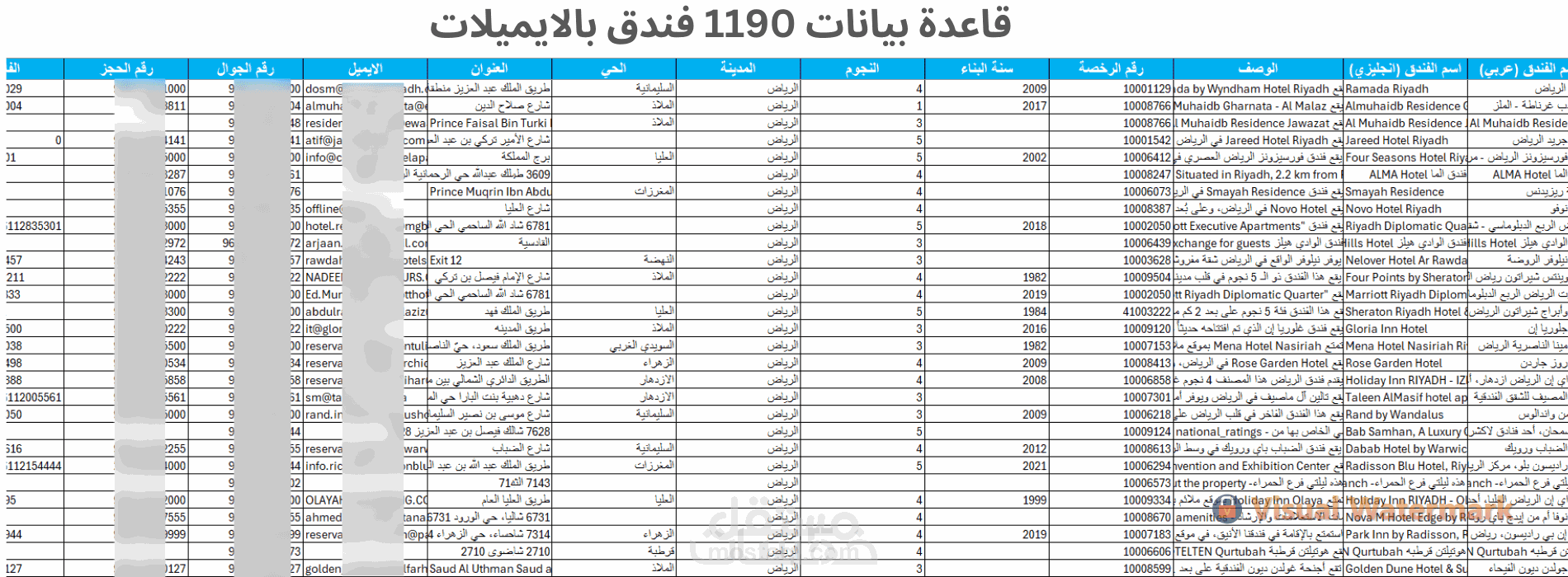 قاعدة بيانات آخري بها 1190 فندق مع الإيميلات وأرقام الجوال