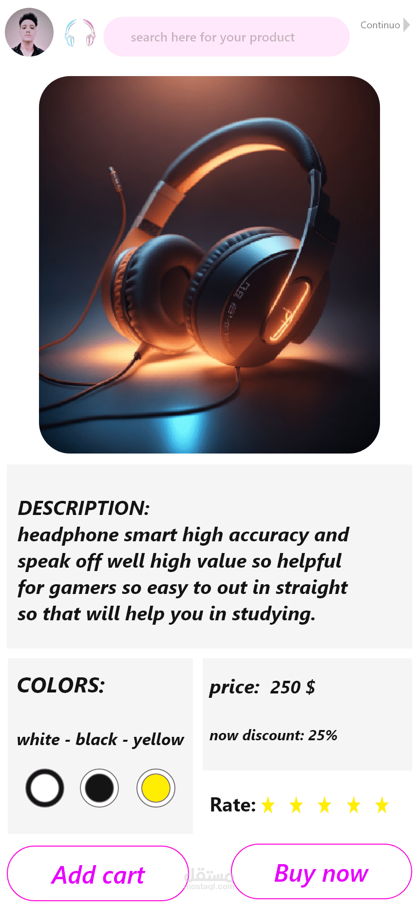 mobile application for selling headphones