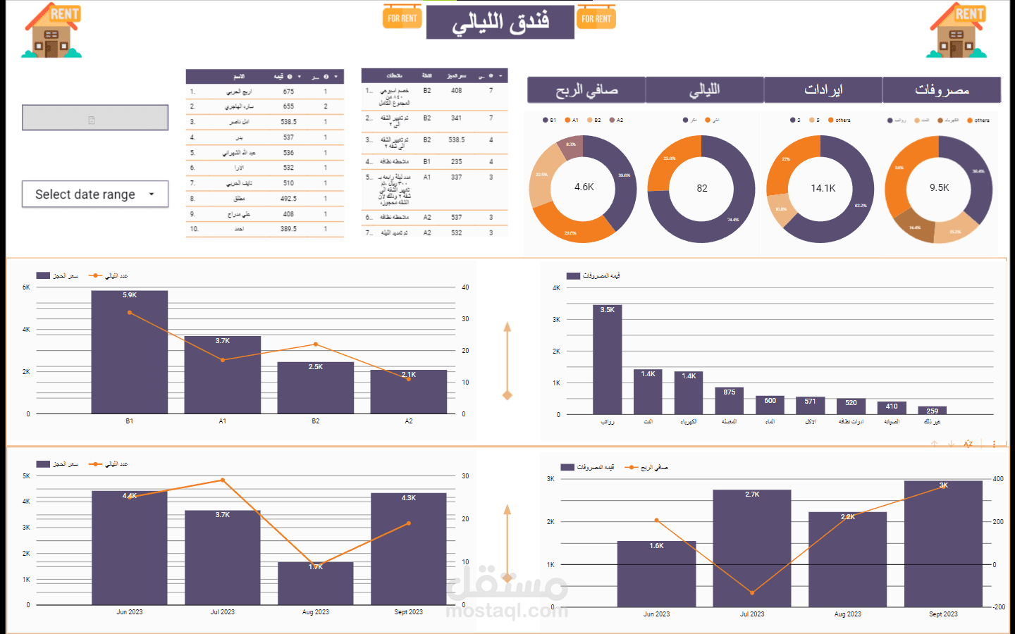 داش بور للفندق و اداره و تحليل بيانات متابعه اعمال و و ماليات و ايجارات و غيرها من خلال جوجل داتا استوديو google data