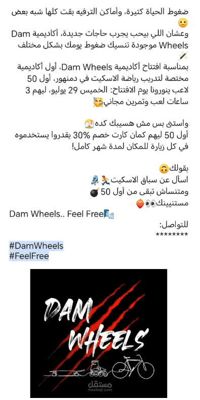بوست ضمن حملة اعلانية غير رسمية لأكاديمية Dam Wheels.