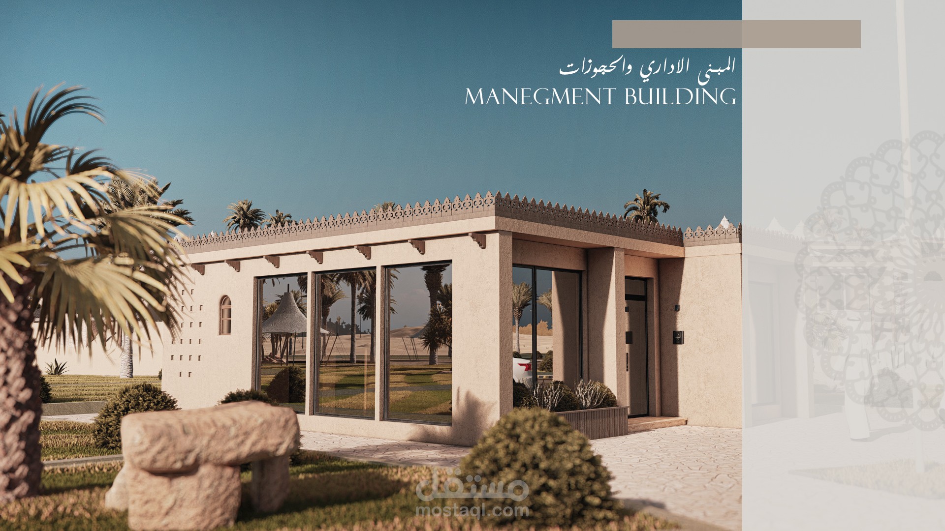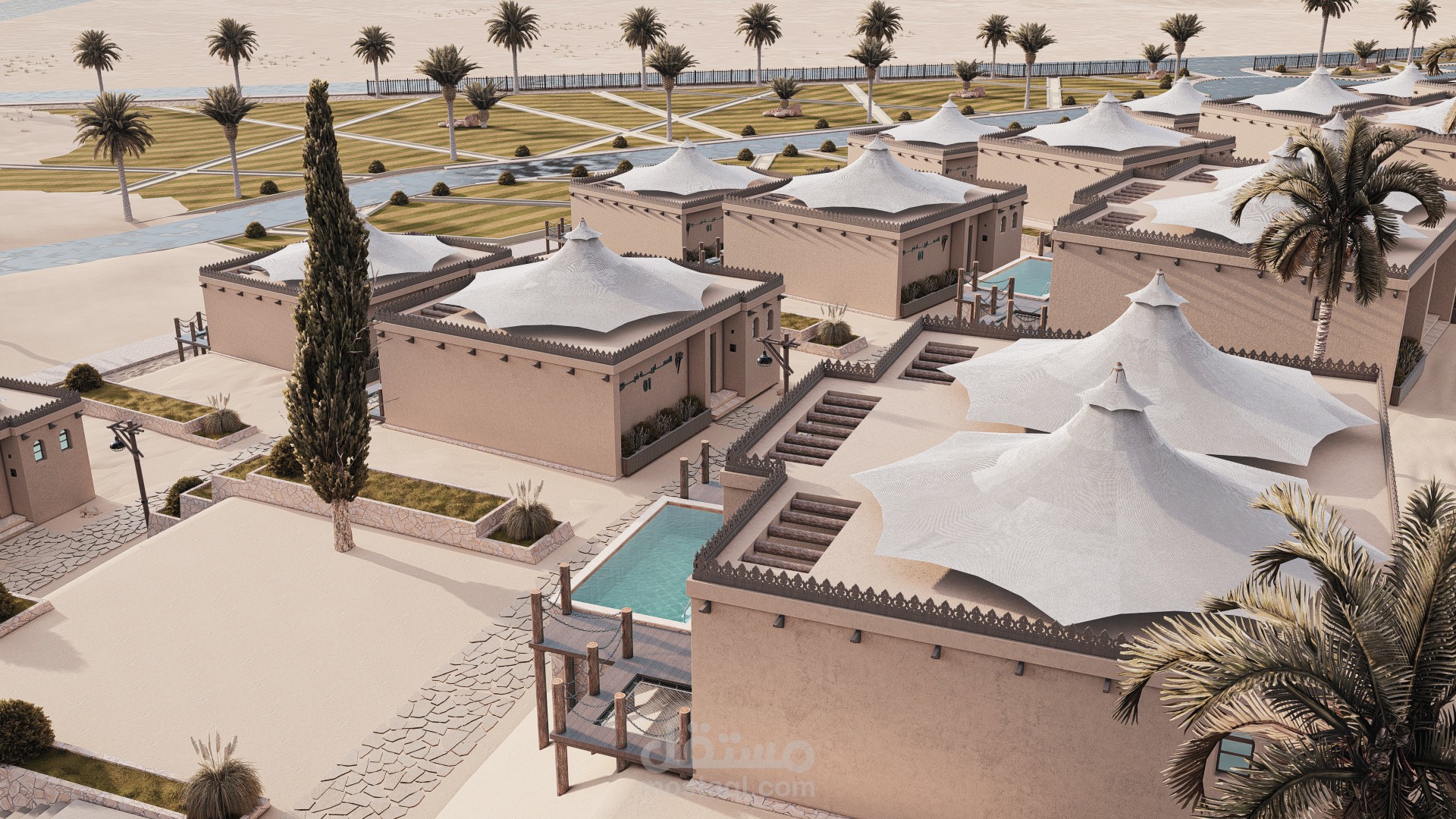 تصميم وبرزنتيشن لمنتجع العمارية في المملكة العربية السعودية, التصميم مستوحى ليس فقط من التراث السعودي بل ومن البيئة المحلية لها وللمنطقة, تم العمل بالتعاون مع الهيئة الملكية العامة للترفيه.