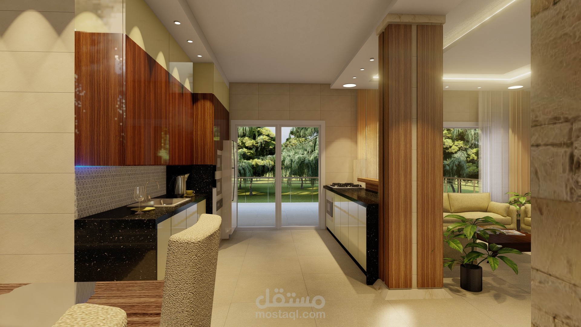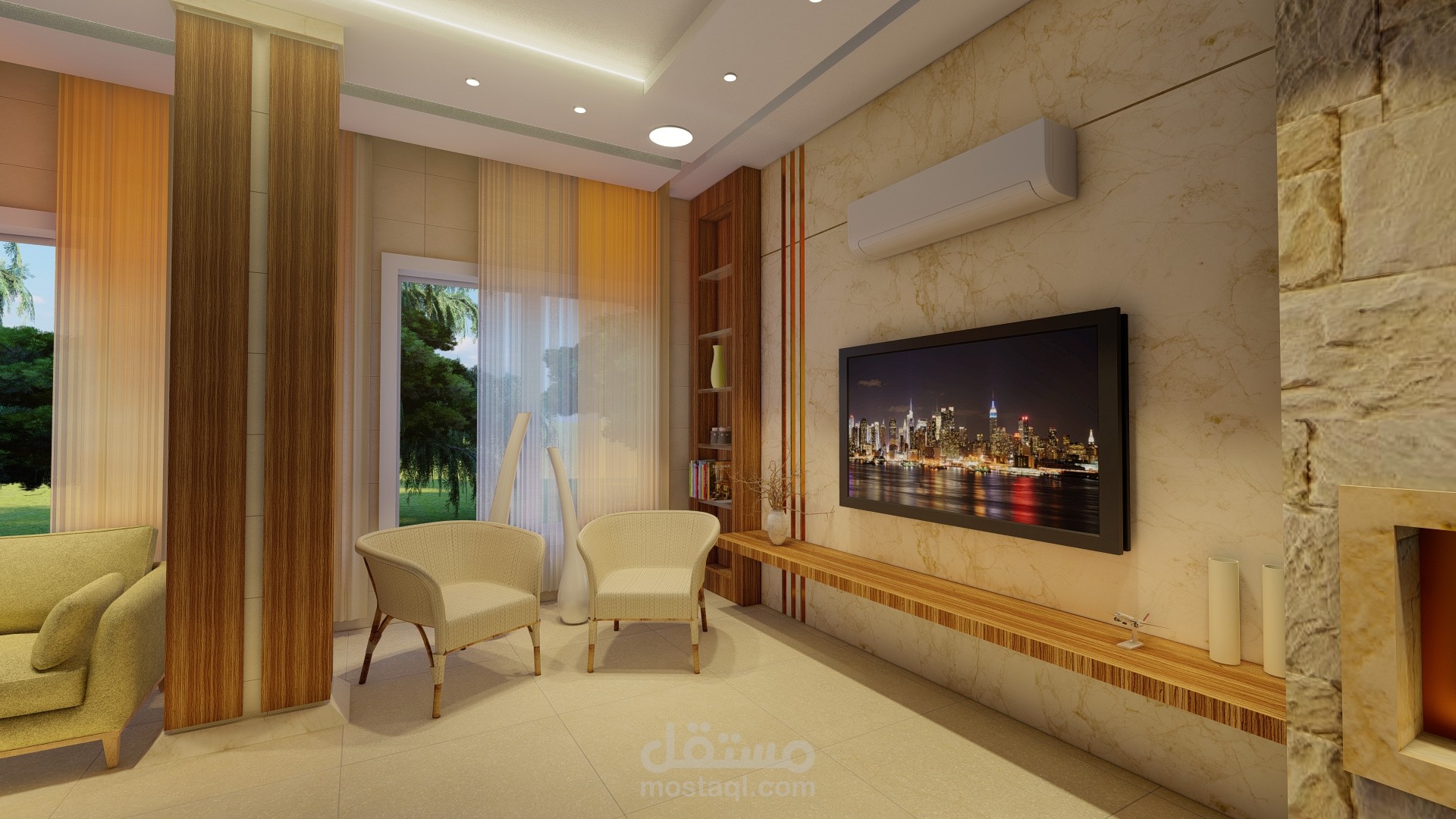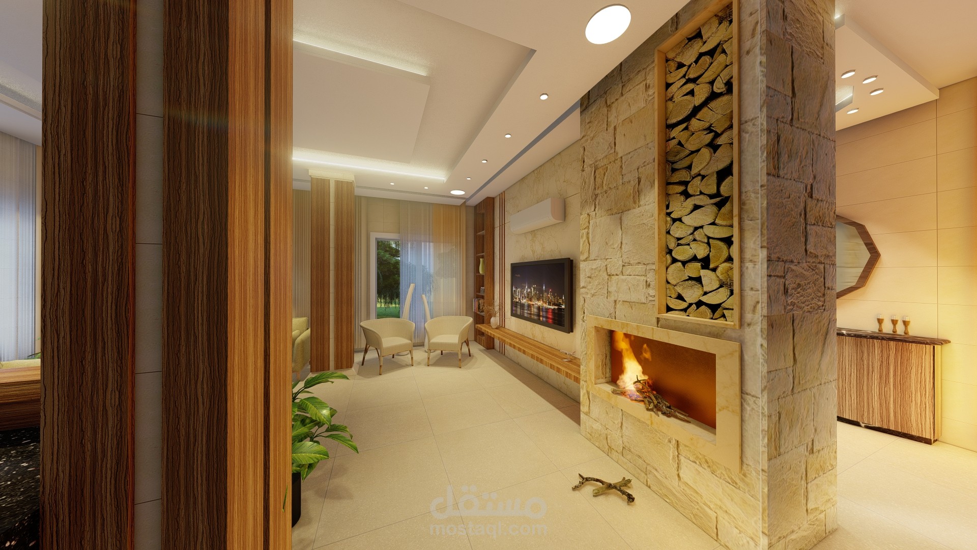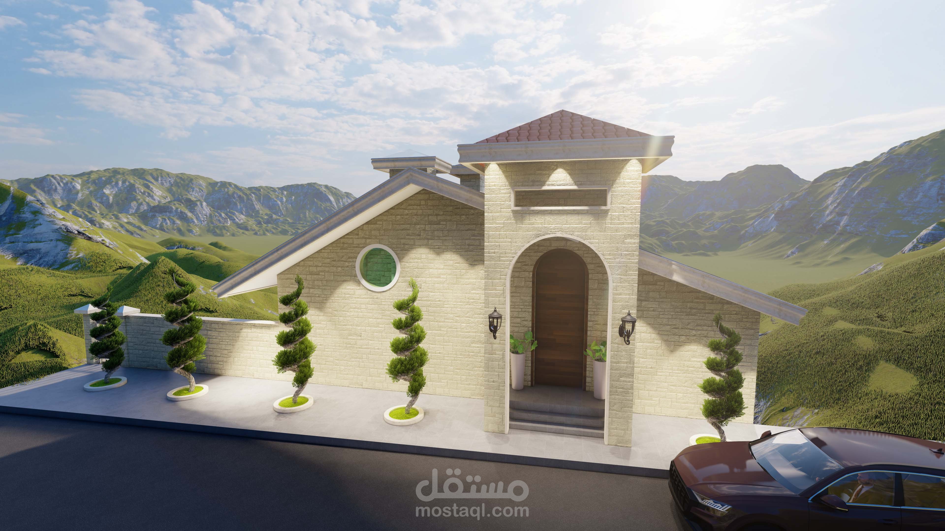 تصميم فيلا مميزة ضمن بيئة جبلية خاصة مع حمام سباحة و شلال بطريقة فريدة و تراس باطلالة ساحرة