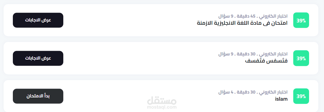 * مراجعة الامتحانات للطالب لمعرفة الاسئلة الصح والخطا
