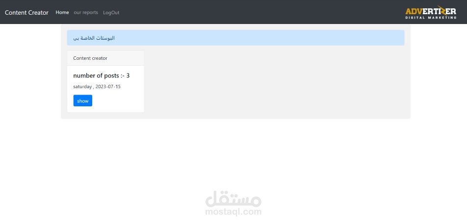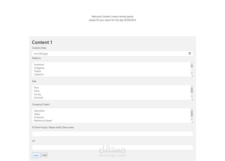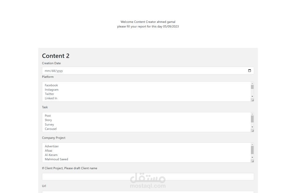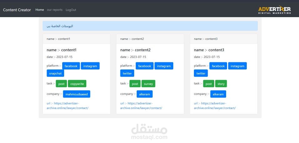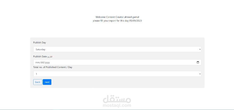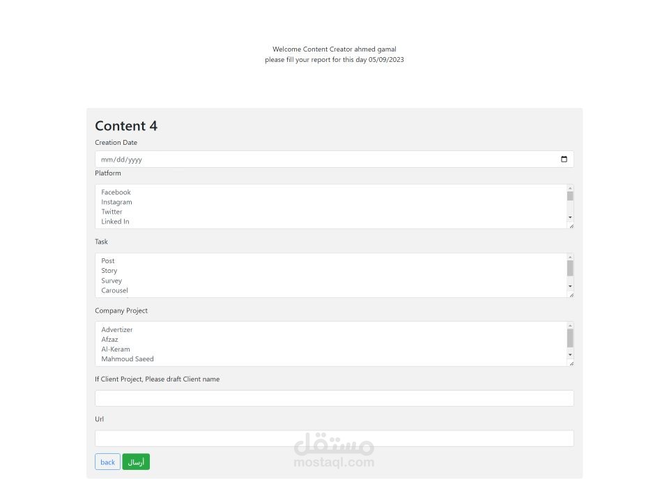 سيستم من أجل ال content creator يقوموا برفع أعمالهم اليومية على مدار شغلهم فى كتابة المحتوى لمنصات السوشيال ميديا
