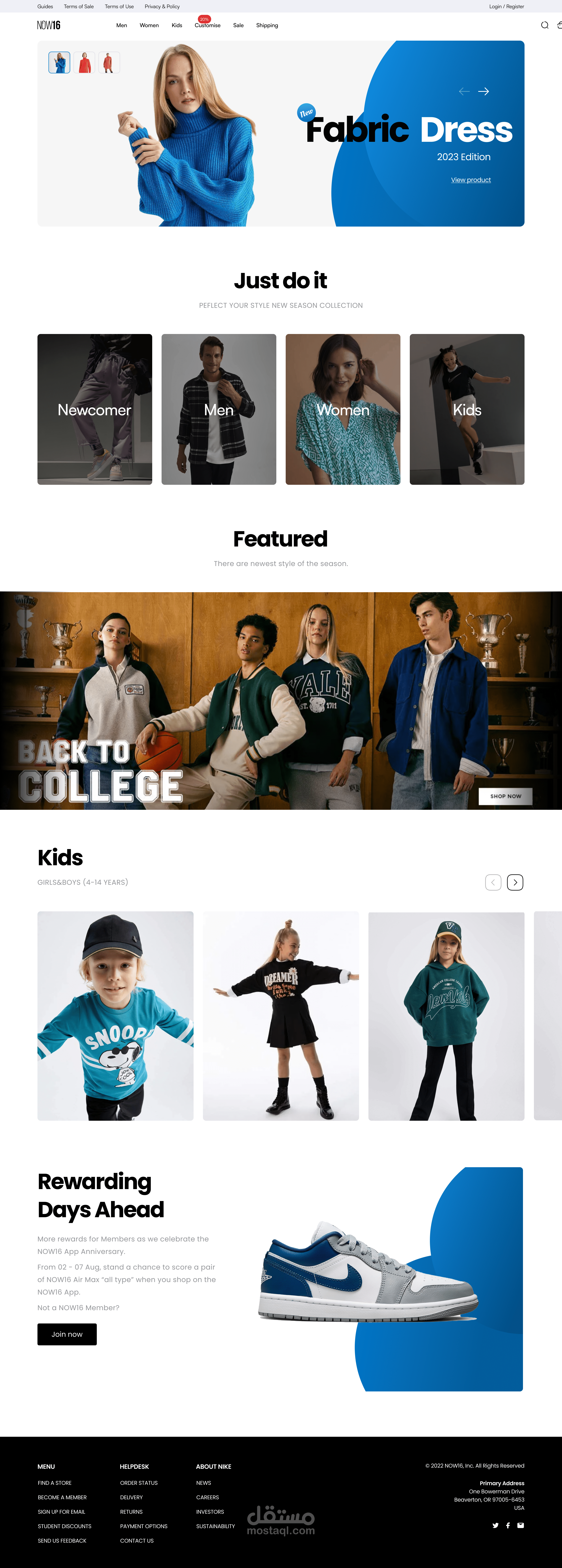 واجهه مستخدم لموقع اكتروني لبيع الملابس
