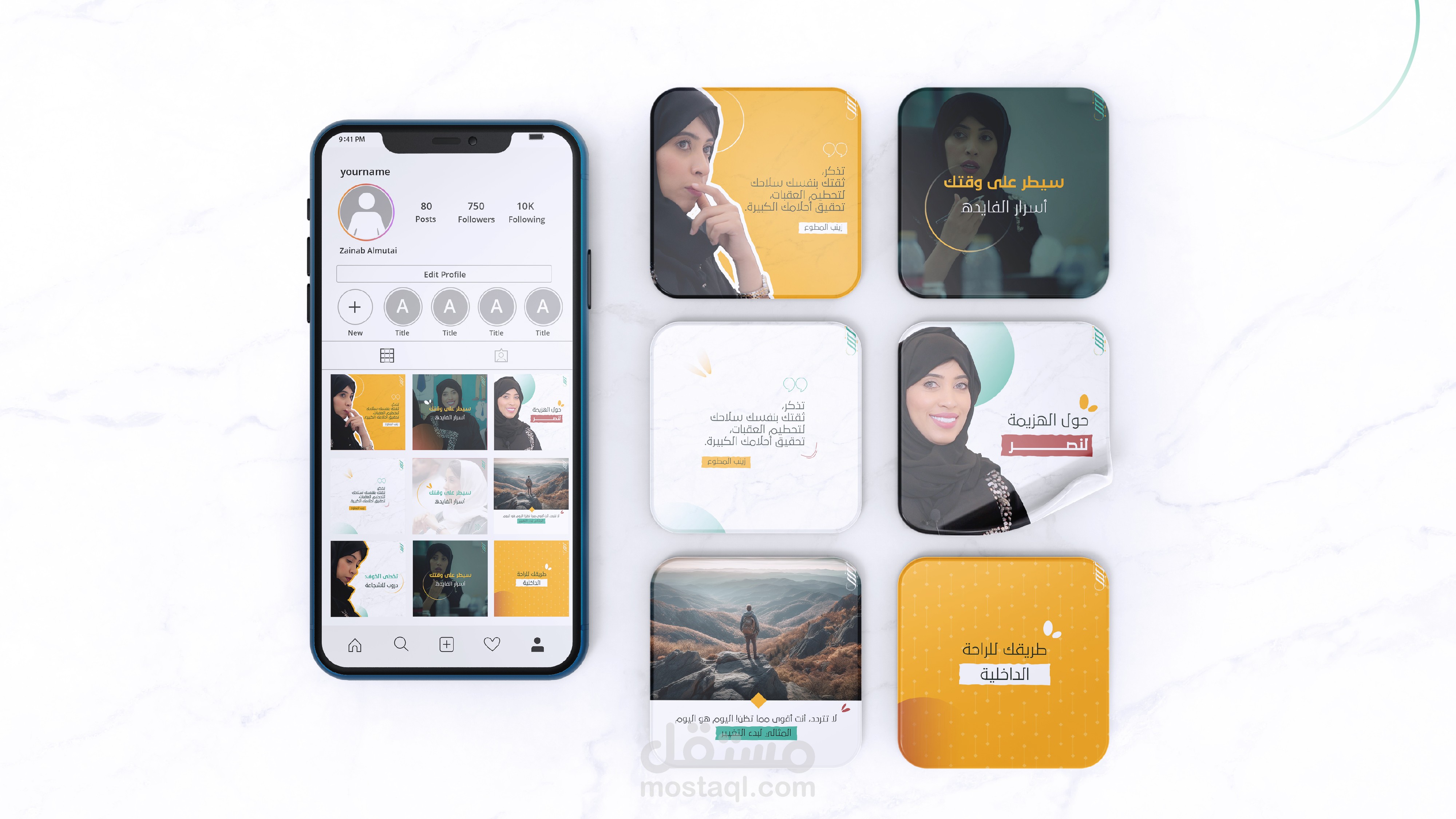 قمت بتنفيذ هوية بصرية متضمنة الشعار وعناصر الهوية البصرية لزينب المطوع وهي إحدى مدربات الذكاء العاطفي في الخليج