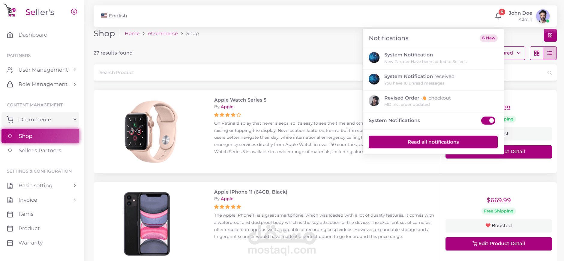 In this project, our focus is on developing a robust administration portal for an e-commerce platform. This portal is exclusively dedicated to application administrators, empowering them with tools for seamless management. Key functionalities of the administration portal include: