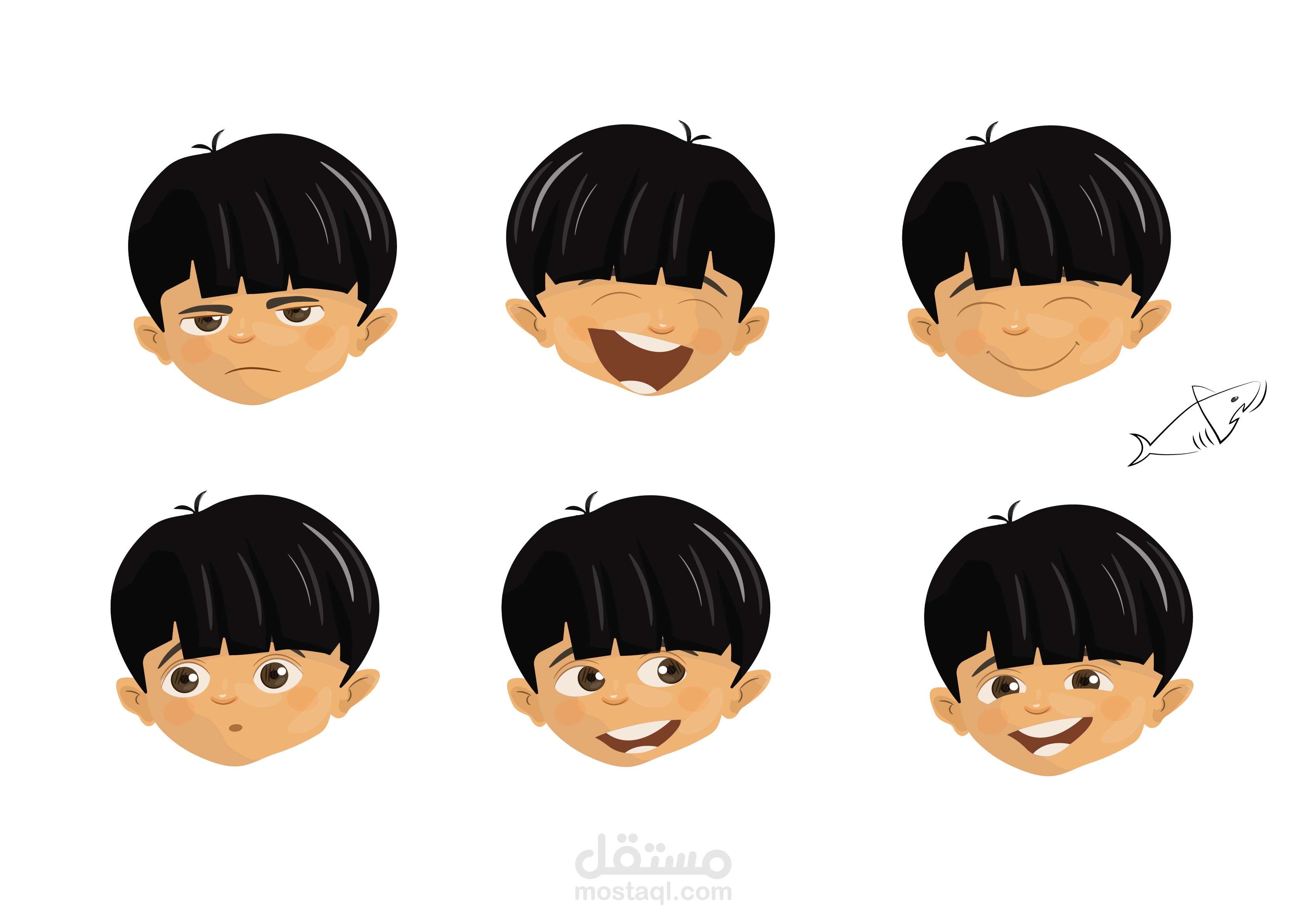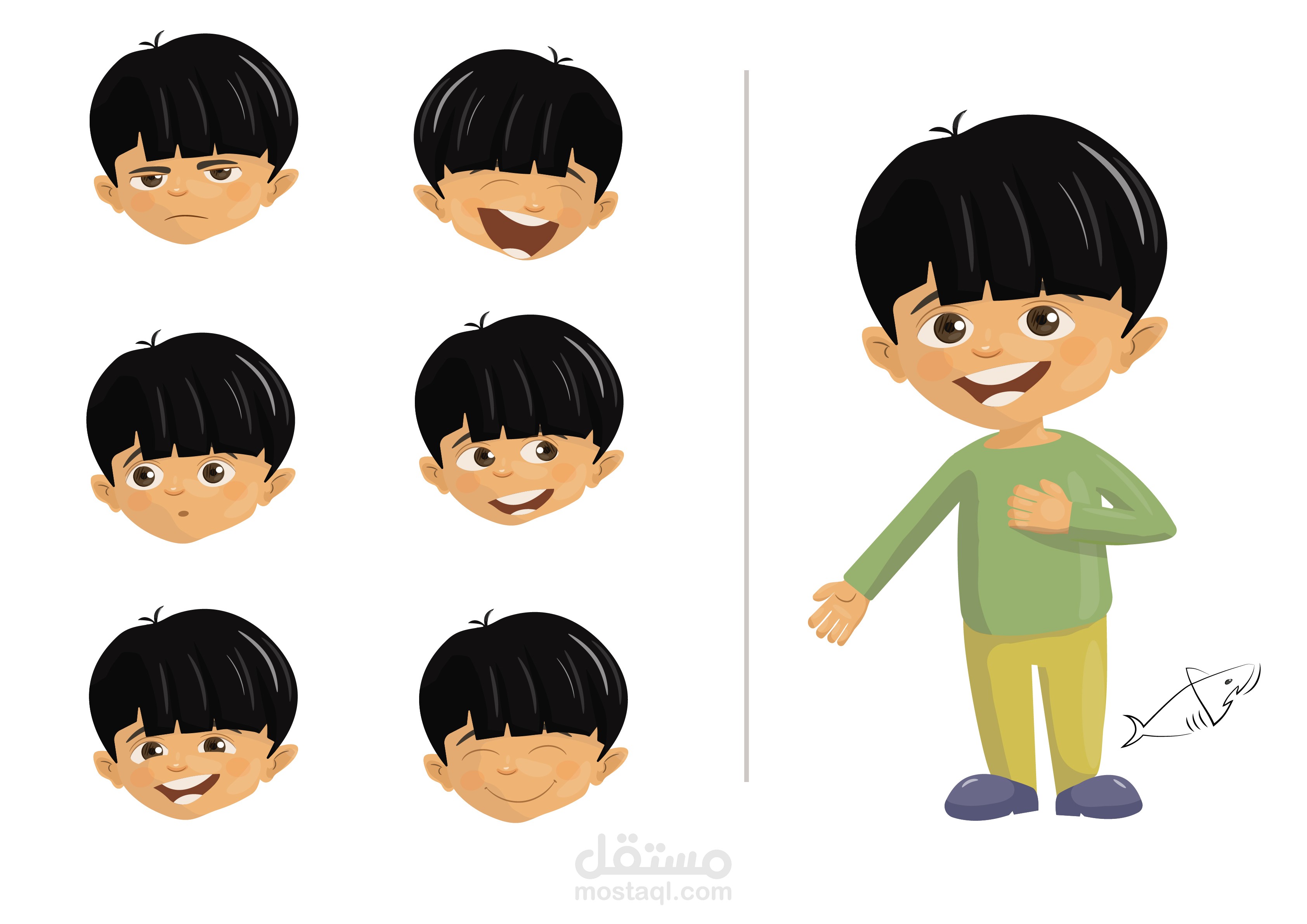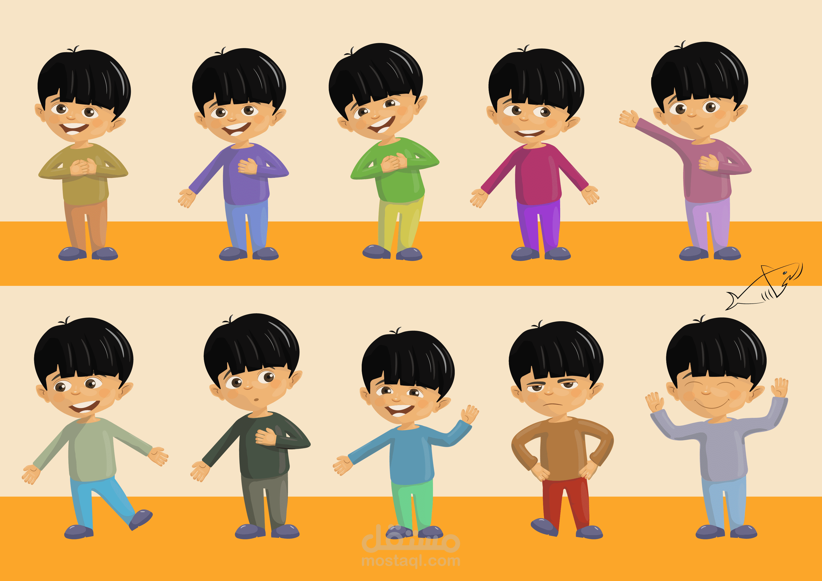 قمت برسم شخصية طفل -وعمل تعبيرات الوجه -وبعض الأوضاع - وتغيير ألوان ملابس