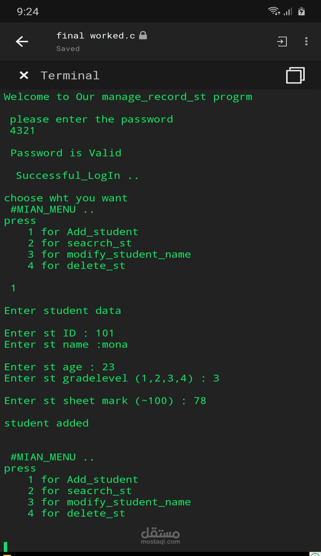 The main purpose of this program was simply to make friendly interface using C Programming language that makes it easy for the user to enter the data wanted to store and enable him easily to process and modify the students’ data. Using coding to simplify, define a real-life problem and introduce a good example of solving that problem as simplest we can. Record Students Data Program