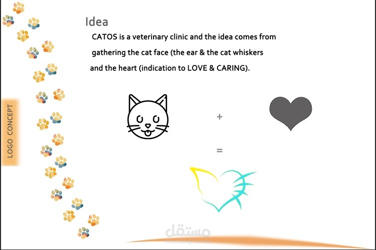CATOS is veterinary clinic and the idea comes from gathering the cat face (the ear and the cat whiskers and the heart), indication to LOVE and CARING.