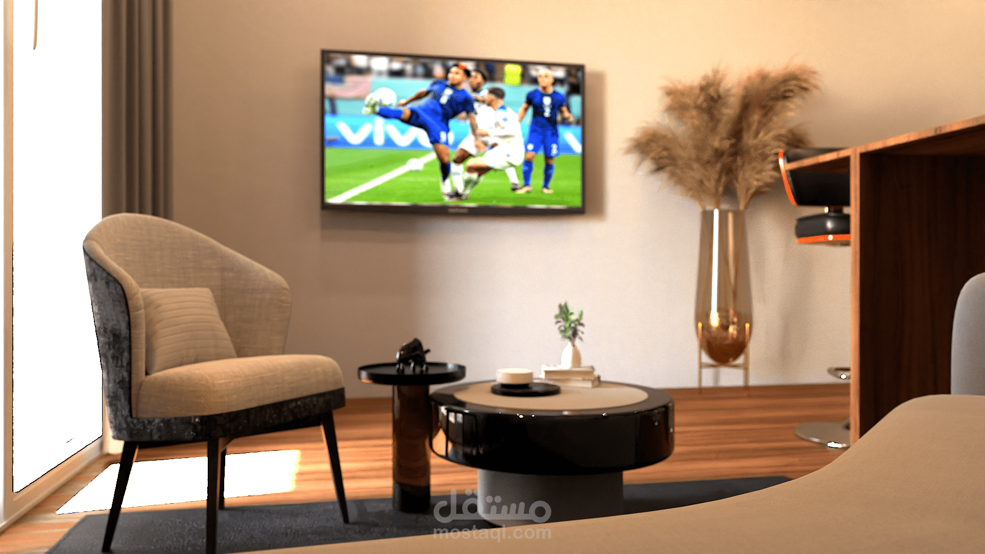 تم التصميم بواقعية وبابعاد حقيقية مماثلة للواقع باستخدام برنامج Blender.