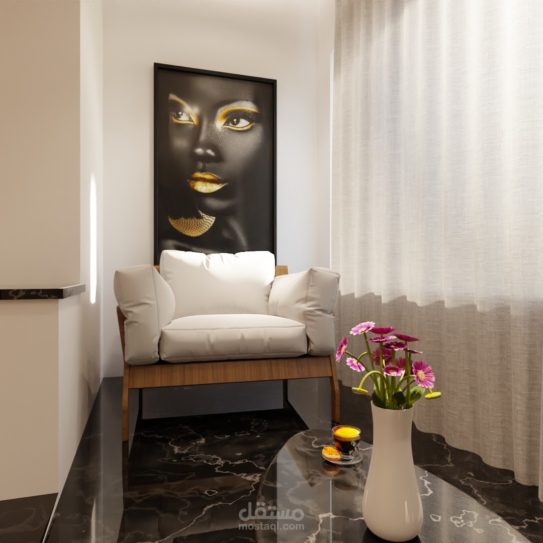 شقة صغيرة بمطبخ مودرن بمطبخ كبير