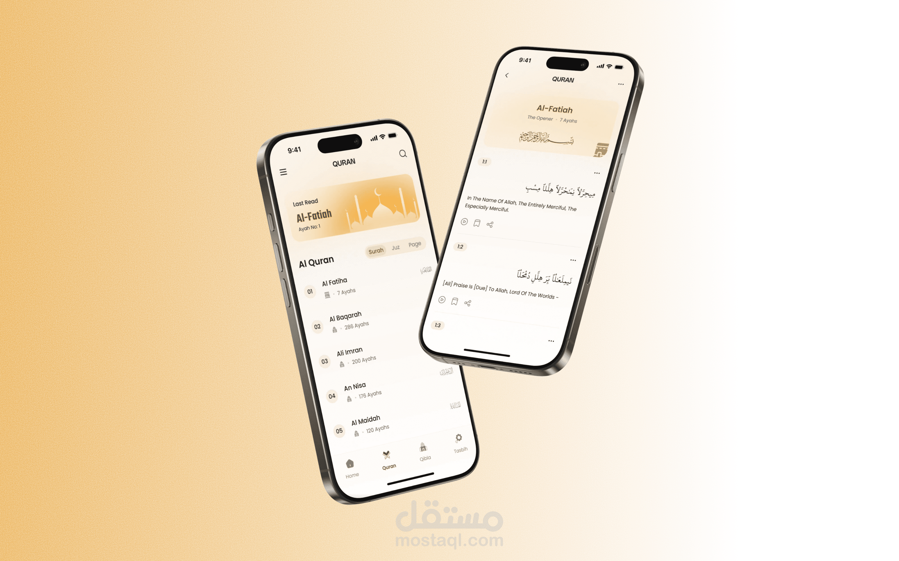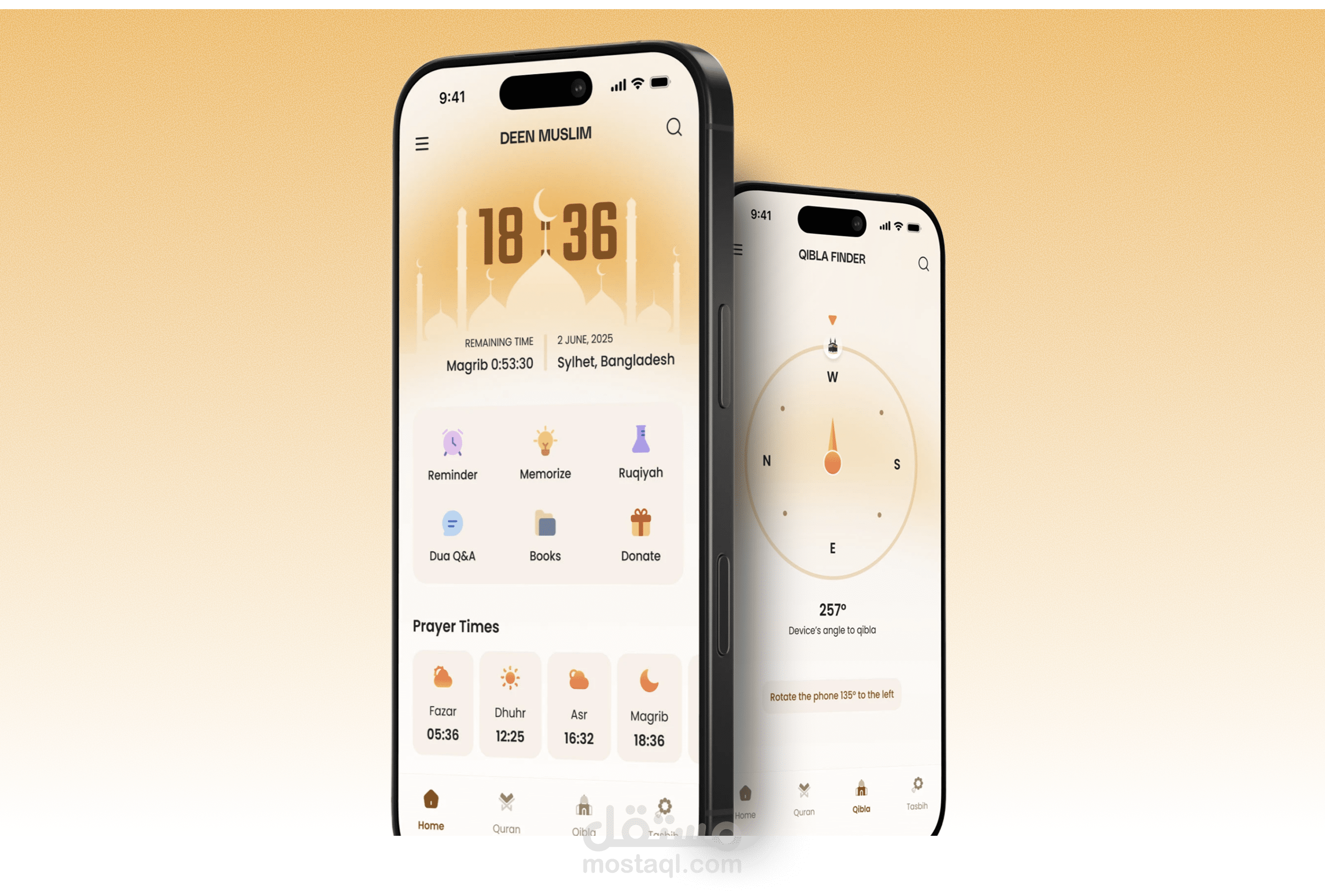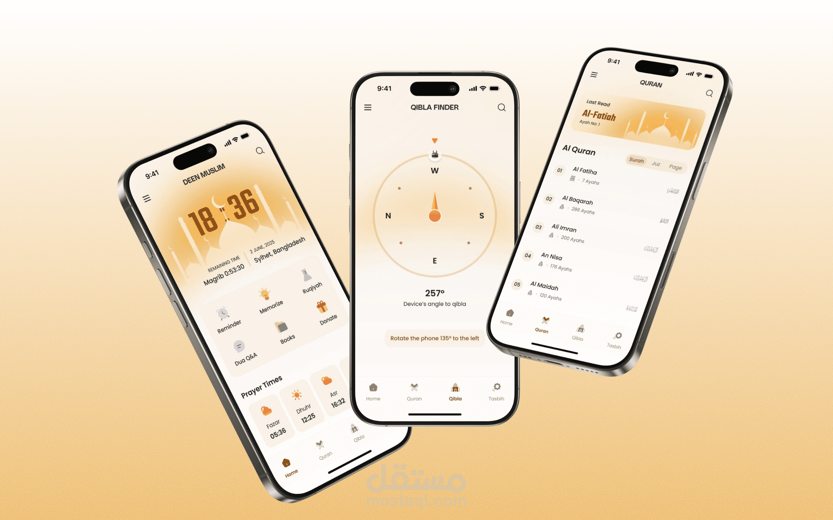 قمت بتصميم واجهة وتجربة مستخدم لتطبيق إسلامي متكامل يهدف إلى مساعدة المسلمين في حياتهم اليومية من خلال الجمع بين أهم الأدوات في مكان واحد مثل قراءة القرآن الكريم مع الترجمة، معرفة أوقات الصلاة مع عداد زمني للوقت المتبقي، تحديد اتجاه القبلة بدقة عبر البوصلة، بالإضافة إلى خصائص أخرى مثل التذكير بالأذكار، أدوات الحفظ والمراجعة، الرقية الشرعية، أسئلة وأجوبة حول الأدعية، والمكتبة الإسلامية. الهدف من التطبيق هو توفير تجربة روحية وعملية في نفس الوقت تسهّل على المستخدم الوصول لكل ما يحتاجه بشكل سريع وواضح. في هذا المشروع اعتمدت على Figma واستخدمت تقنيات حديثة مثل Auto Layout لبناء هياكل مرنة ومنظمة قابلة للتطوير، وتصميم متجاوب Responsive Design لضمان التكيف مع مختلف الأجهزة، وإنشاء مكتبة مكونات Components قابلة لإعادة الاستخدام مما عزز من سرعة الإنجاز وحافظ على التناسق البصري بين جميع الشاشات. كما عملت على اختيار ألوان هادئة وتدرجات دافئة تعكس الطابع الروحاني، مع واجهة نظيفة وسهلة الاستخدام تضمن للمستخدم تصفحاً مريحاً وخالياً من التعقيد، والنتيجة تصميم حديث وأنيق يحافظ على الهوية الإسلامية ويوفر تجربة استخدام سلسة ومتوازنة بين الجمال والوظيفة.