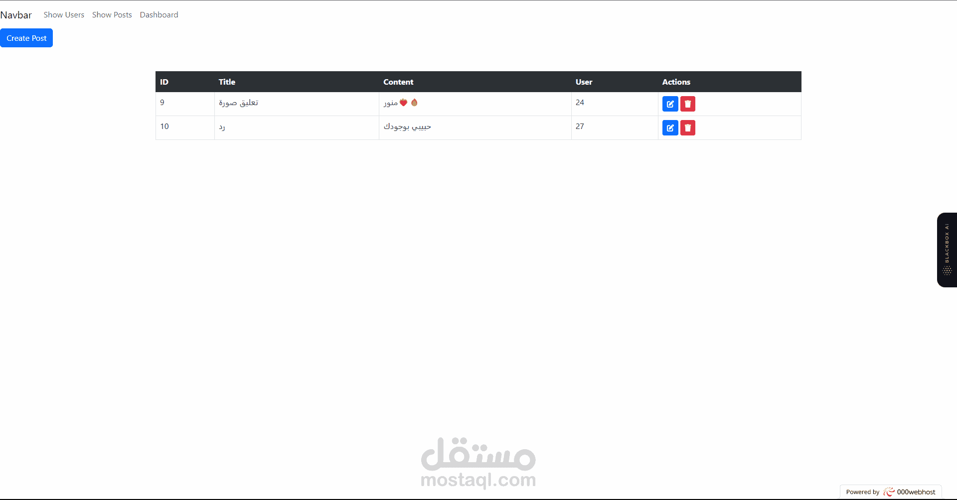 تفاعل متقدم: توفير تفاعل متقدم يمكن للمستخدمين من خلاله تنفيذ العمليات CRUD بسهولة، مع إعطاء إشعارات أو رسائل تحديث حالة العمليات.