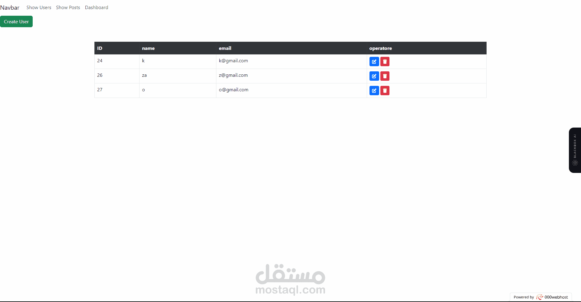هذا العمل هو لوحة تحكم بسيطة (dashboard) تم تصميمها وتطويرها لأغراض تجريبية بهدف فهم واختبار عمليات إنشاء وقراءة وتحديث وحذف البيانات (CRUD) في إطار العمل Laravel.