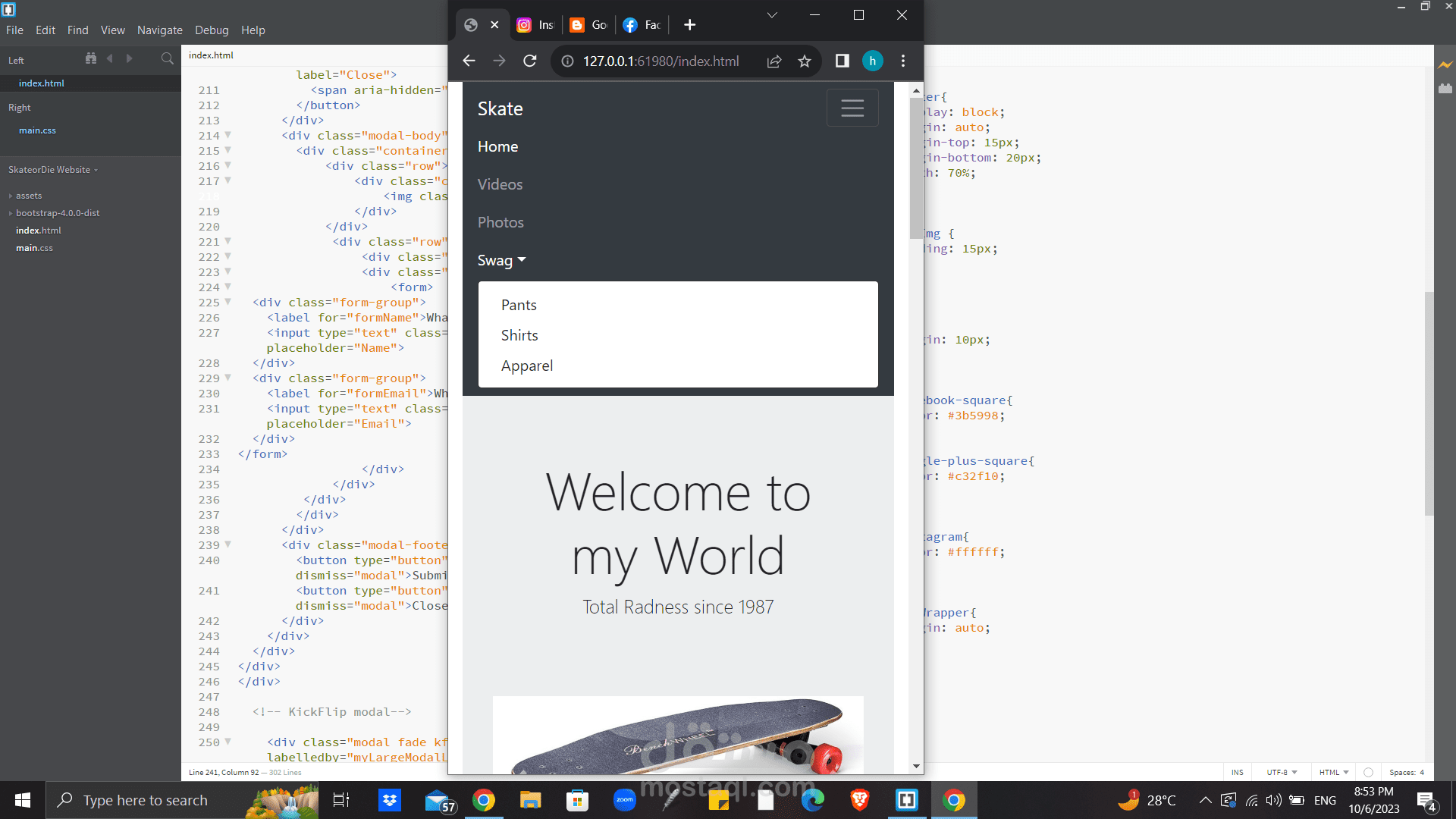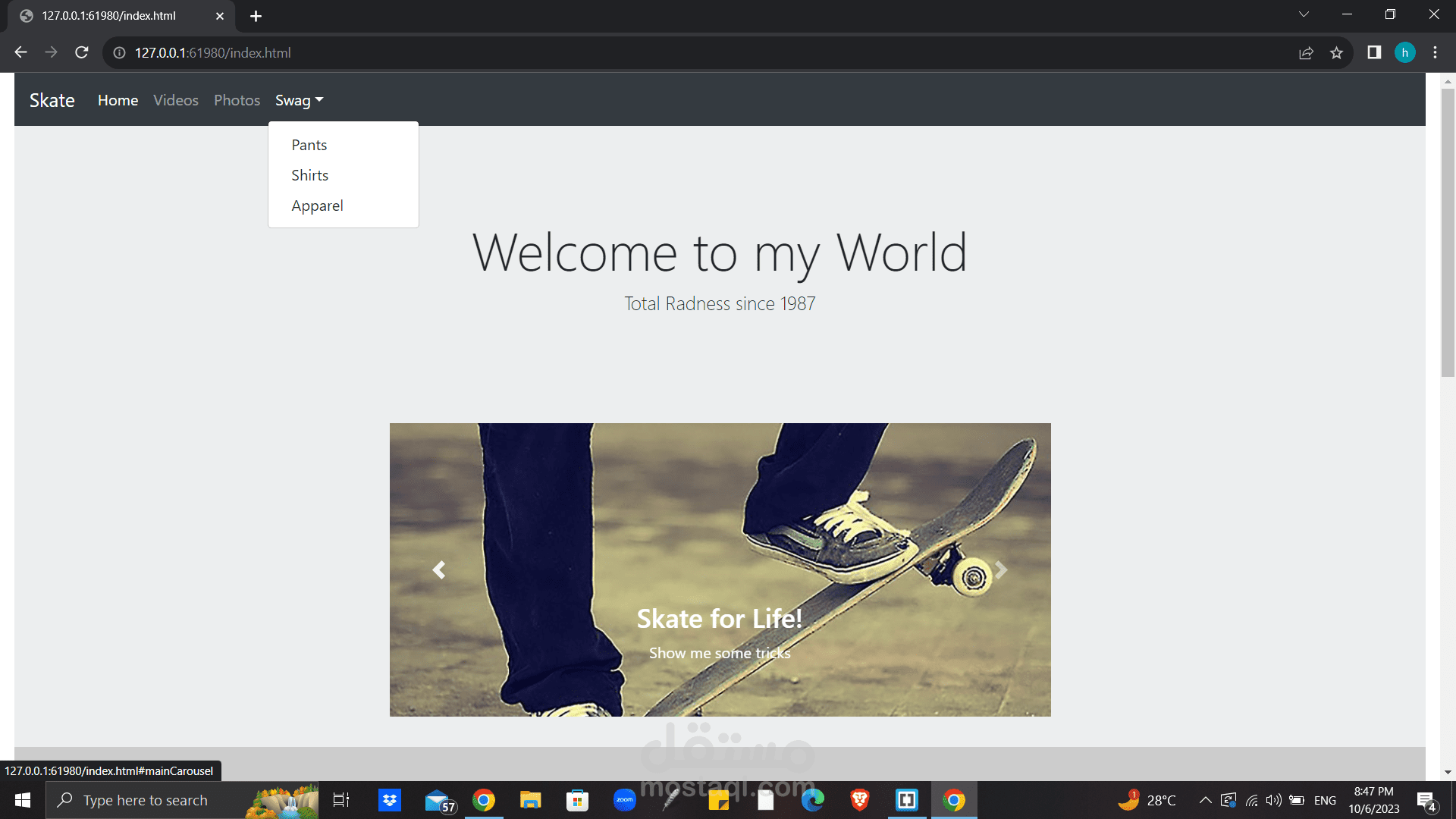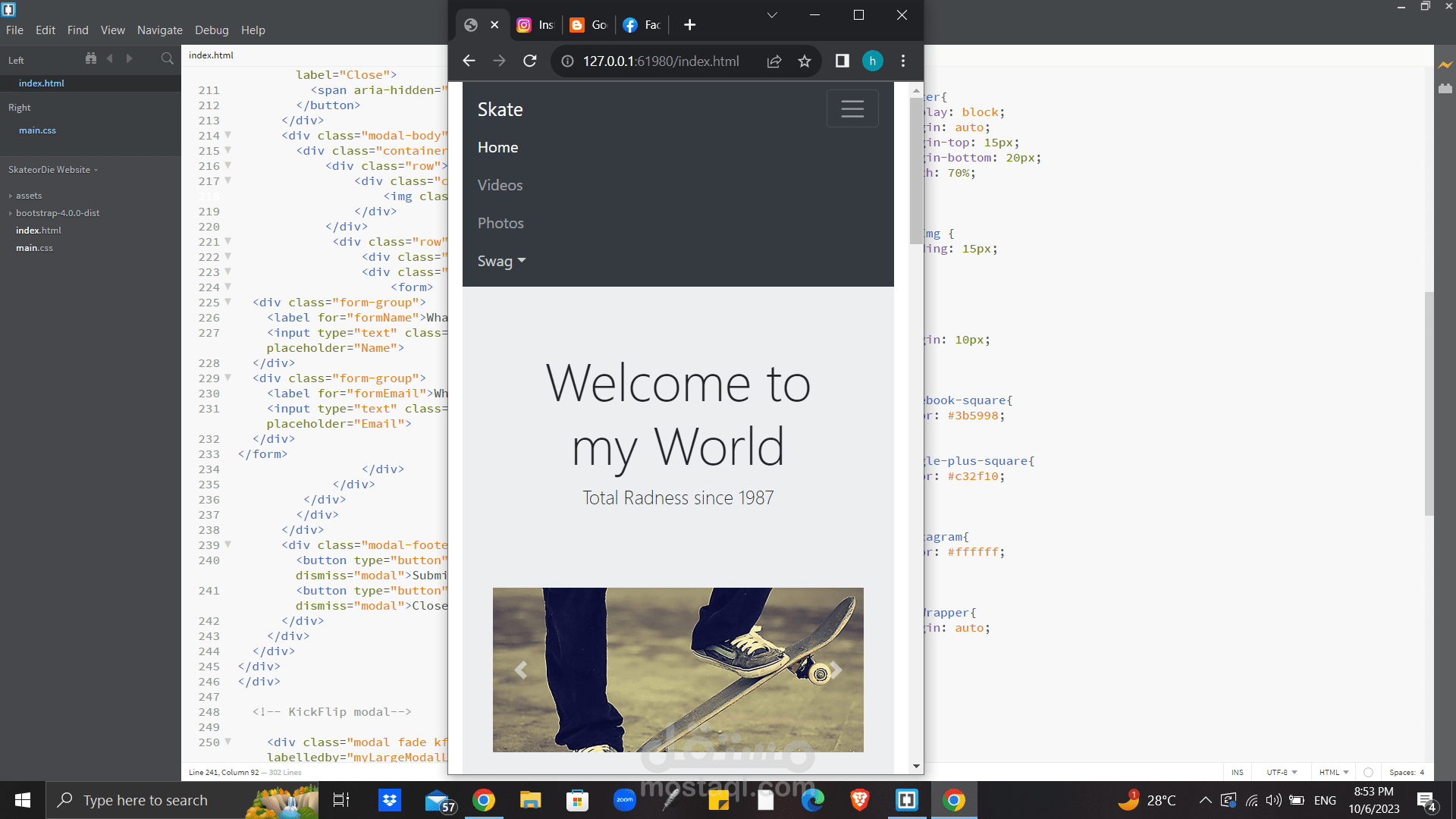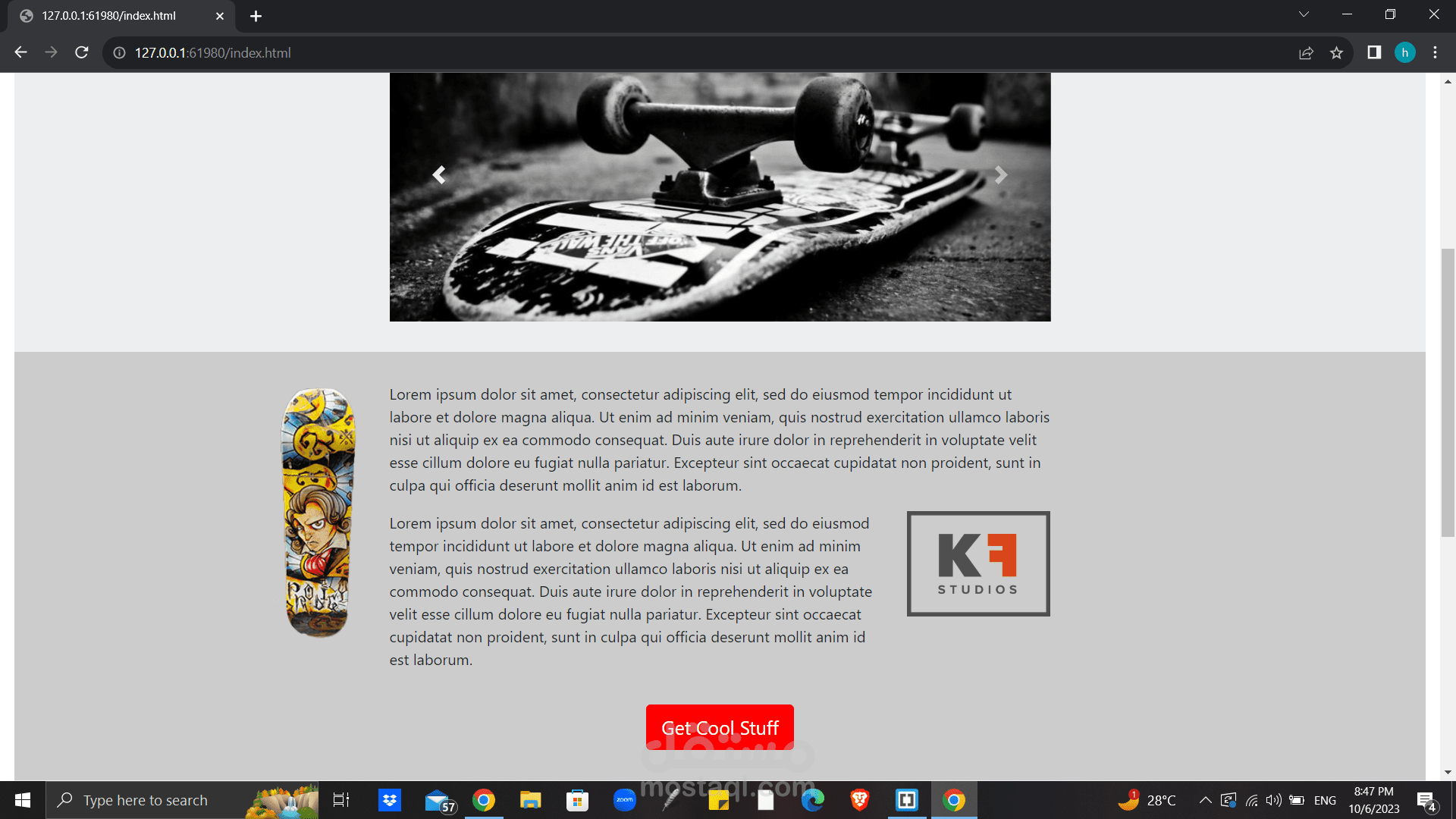 SkateorDie-Website is a visually appealing website project created using HTML, CSS, and Bootstrap. This project is designed to celebrate the world of skateboarding and provide visitors with an immersive experience. It showcases web development skills and best practices, including responsive design for various screen sizes, and leverages the power of Bootstrap for a sleek and modern look.