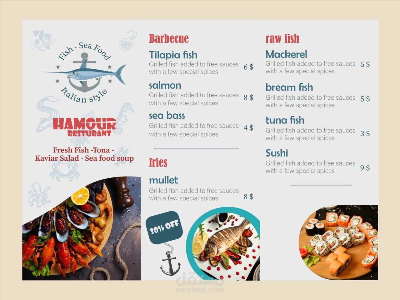 Graphic design restaurant menu hamour restaurant