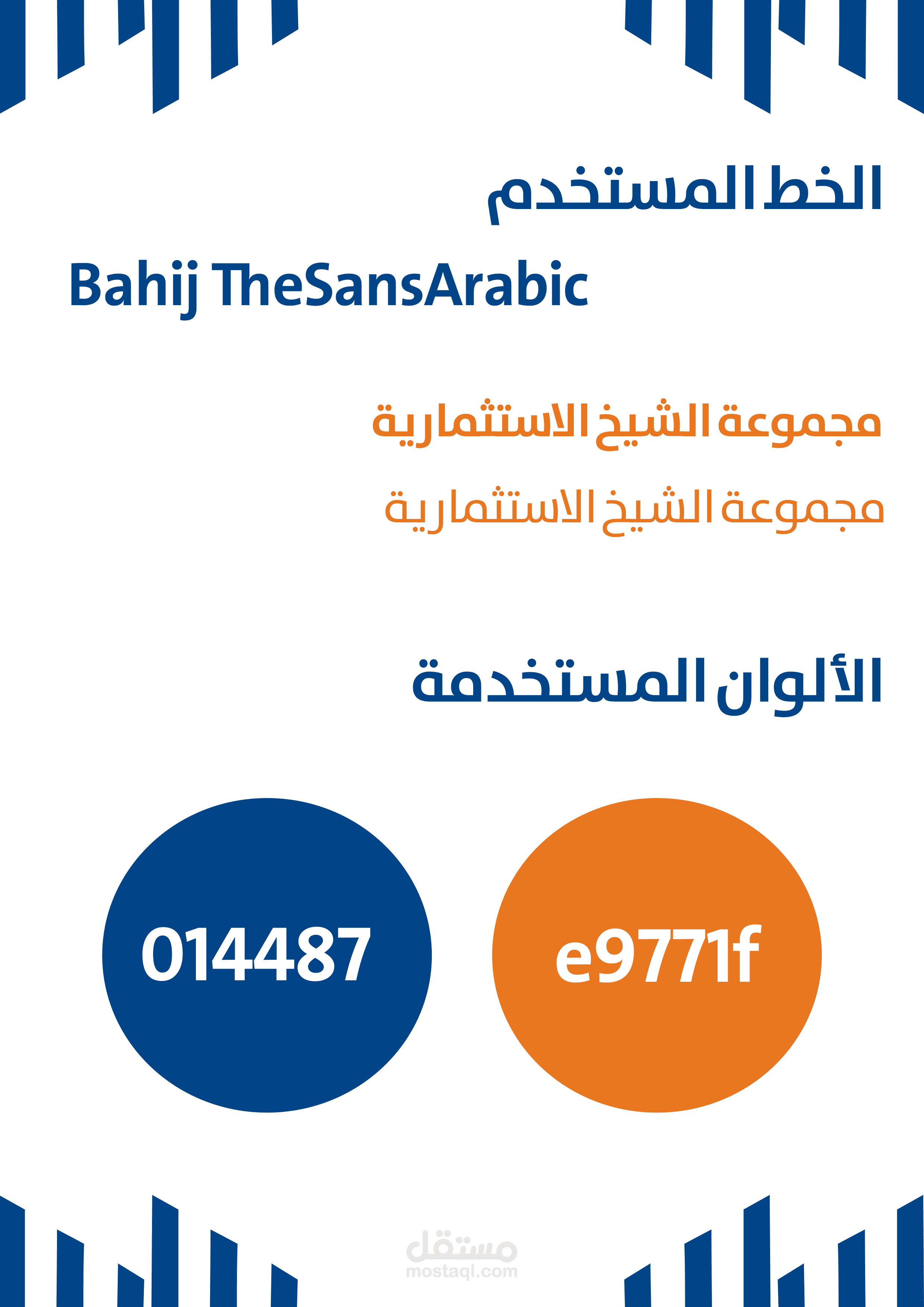 تم تطوير هذه الهوية البصرية ببساطة لصالح شركة الشيخ الاستثمارية، والتي تختص في استثمار العقاري وشراء الأسهم داخل الشركة. تم التركيز في هذا التصميم على إظهار مفهوم الاستثمار والأعمال المالية بطريقة بسيطة وجذابة. استخدمت الألوان والرموز لتعزيز فهم العملاء للنشاط الأساسي للشركة وإبراز مكانتها في سوق الاستثمار.