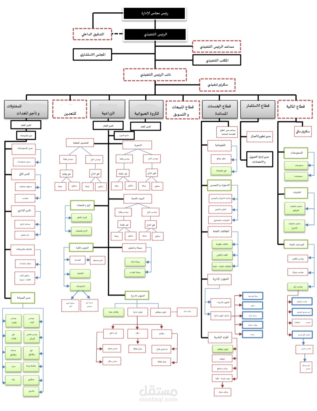 تم عمل هيكل تنظيمي متكامل، يشمل الشركة الأم و فروعها إن الهيكل التنظيمي يضم العديد من الفروع و الإدارات و الأقسام و تفاصيل العاملين بكل فرع و إدارة متفرعا من رئيس مجلس الآدارة آلى أصغر عامل موجود بالقسم . .