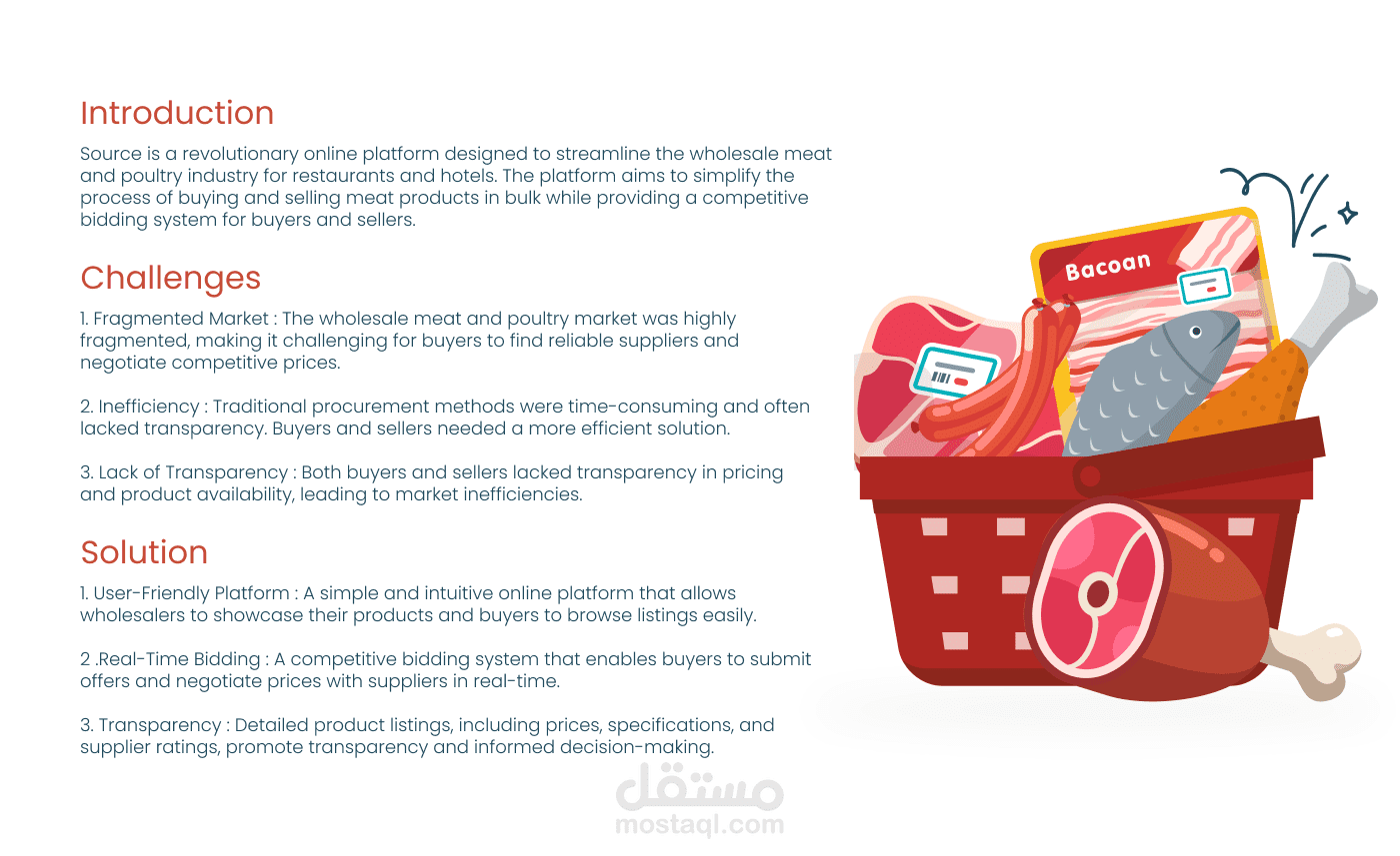 Source is a revolutionary online platform designed to streamline the wholesale meat and poultry industry for restaurants and hotels. The platform aims to simplify the process of buying and selling meat products in bulk while providing a competitive bidding system for buyers and sellers.