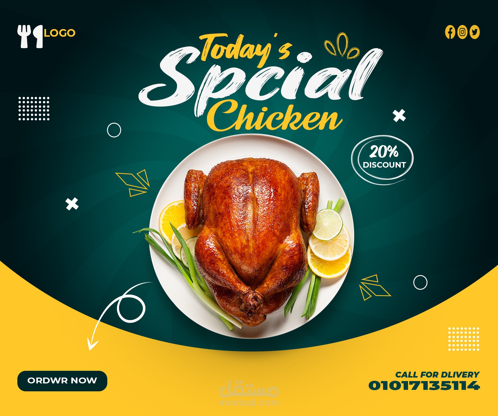 تصميم اعلان ترويجي لوجبه عن طريق السوشيال ميديا
